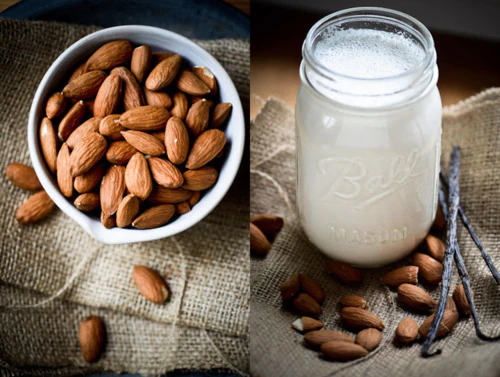 Ở Việt Nam, bạn không dễ tìm mua được sữa hạnh nhân. Vì thế hãy mua hạt hạnh nhân rồi tự xay làm sữa hạnh nhân.