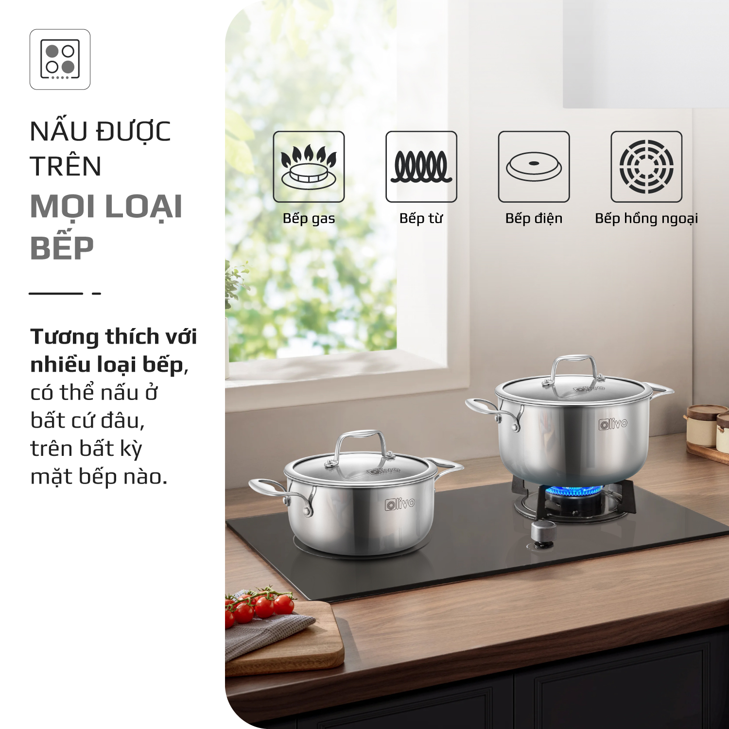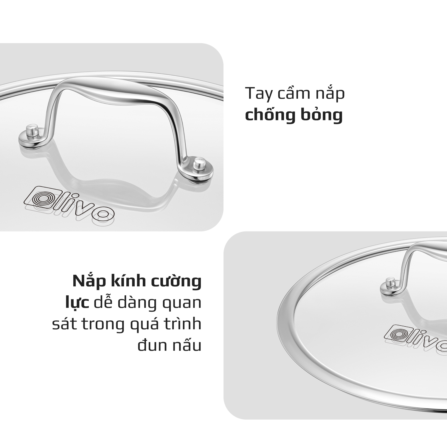 Bộ 2 Nồi OLIVO DAVINCI – Đa Dạng Kích Thước – Inox 3 Lớp – Nắp Kính Cường Lực – Nấu Được Trên Mọi Loại Bếp
