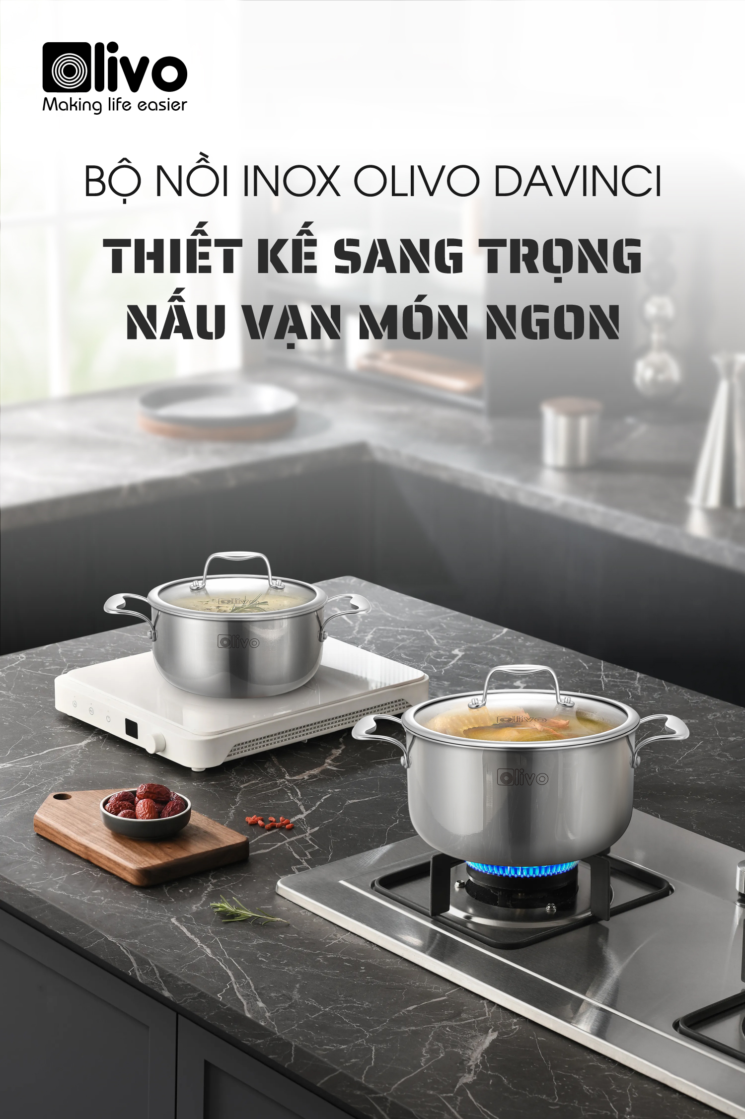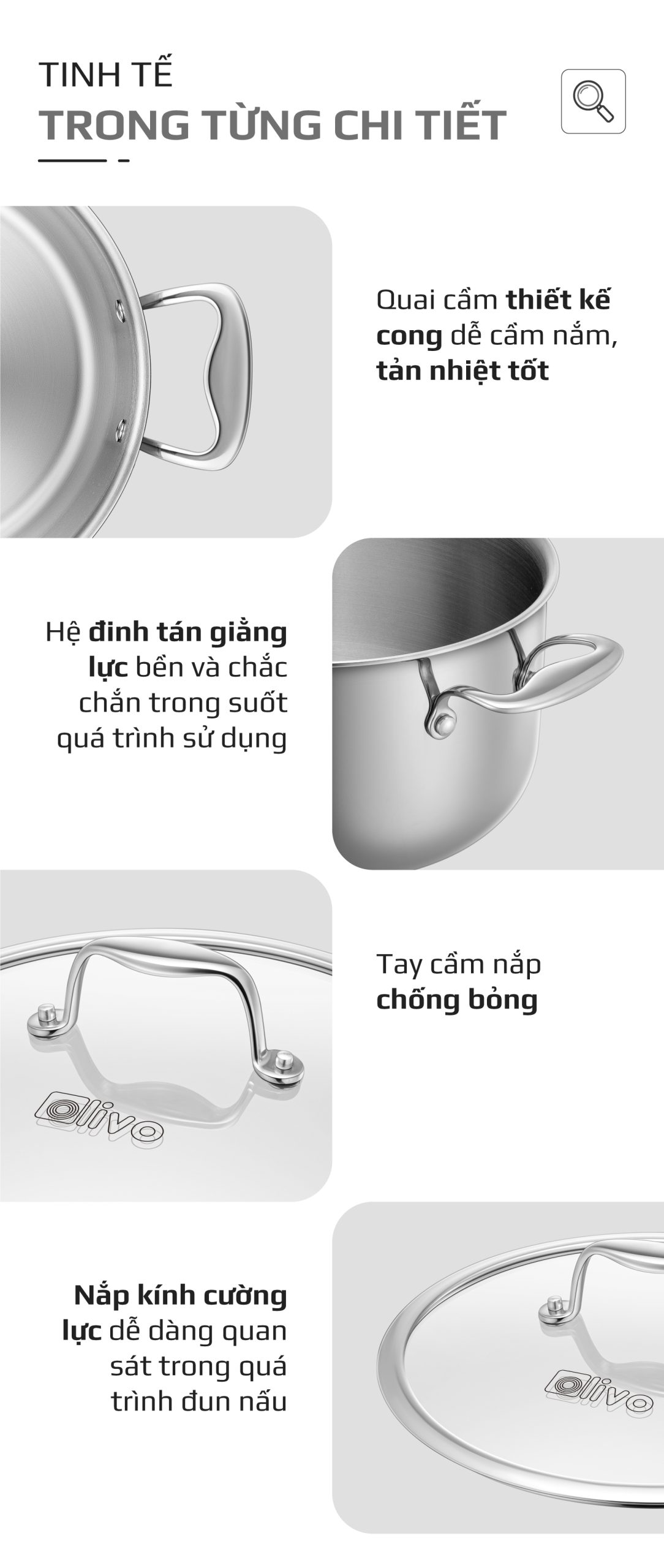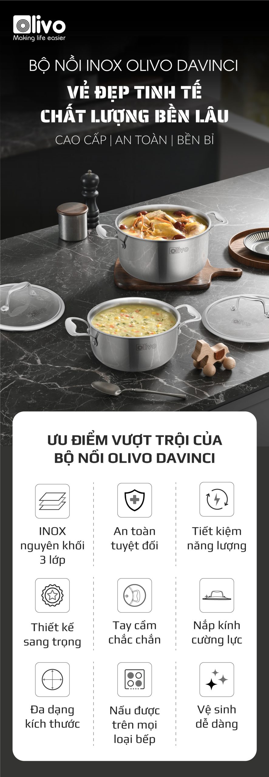 ƯU ĐIỂM VƯỢT TRỘI CỦA BỘ NỒI INOX OLIVO DAVINCI