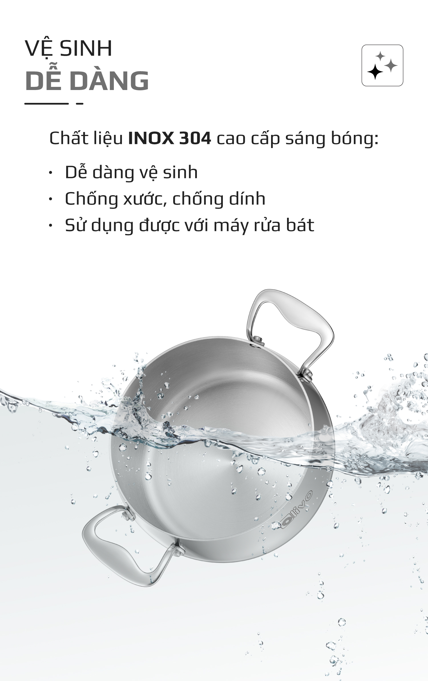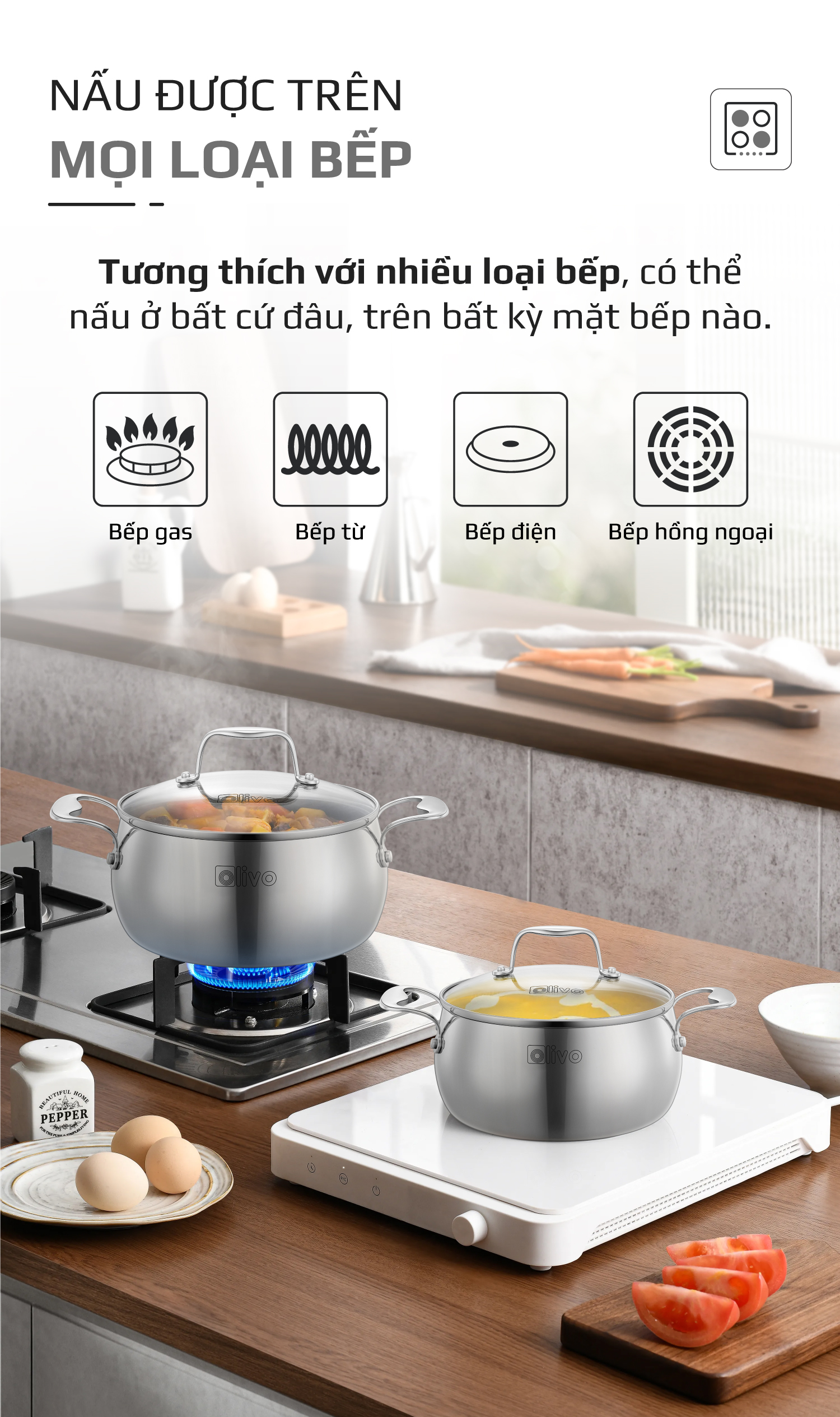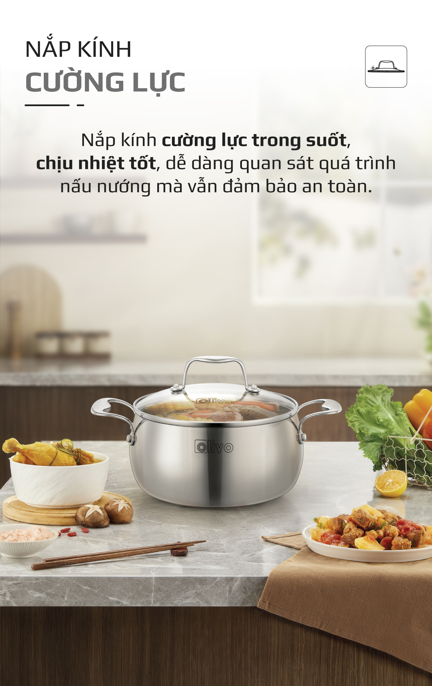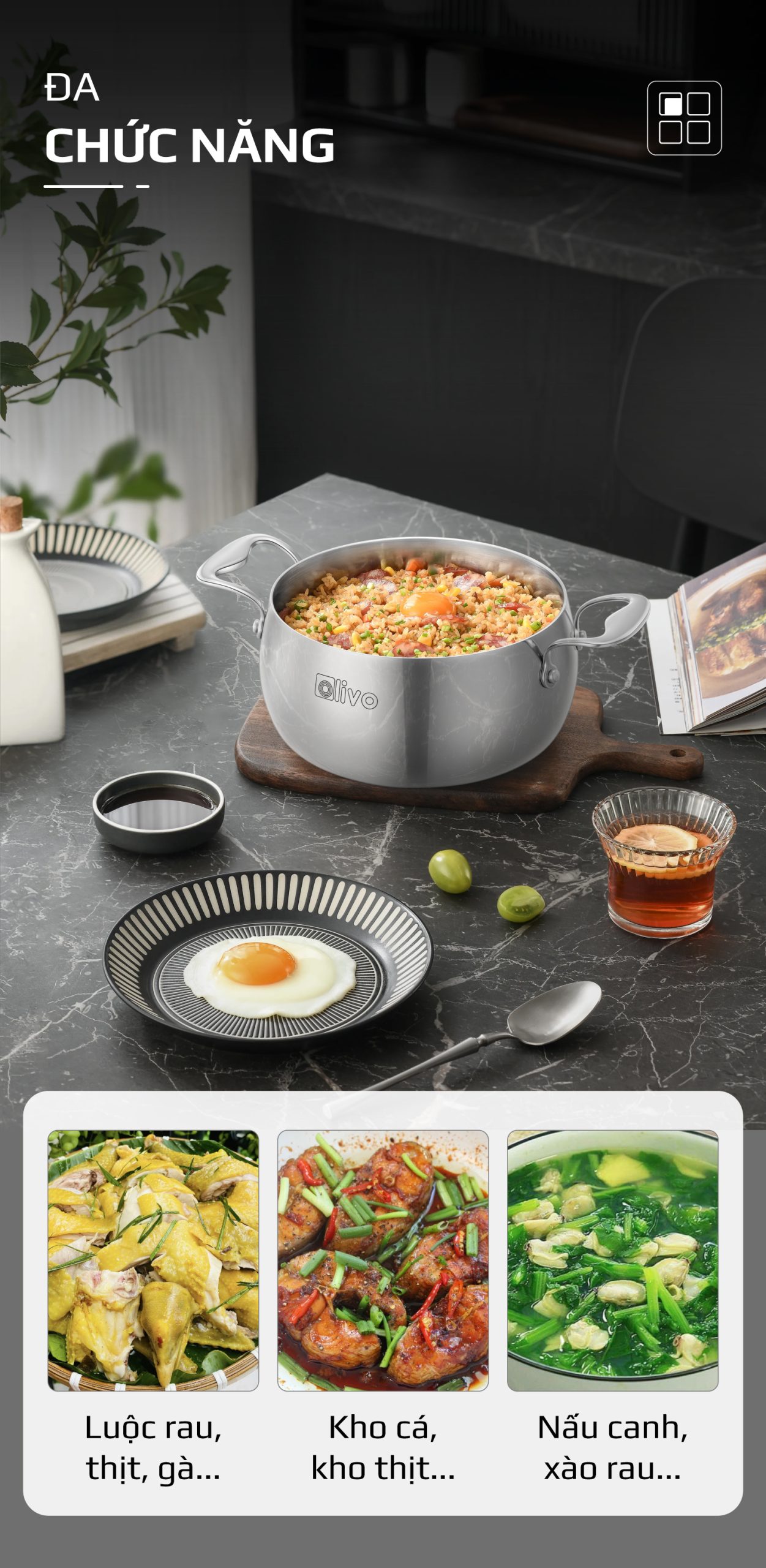 • Từ chất liệu inox nguyên khối cao cấp, thiết kế dáng tròn tinh tế, đến tính năng tản nhiệt đều, đa dạng kích thước – bộ nồi inox OLIVO Steve CS không chỉ là dụng cụ nấu ăn, mà còn là biểu tượng của phong cách sống hiện đại, nâng tầm trải nghiệm nấu nướng và chăm sóc sức khỏe cho gia đình Việt.