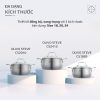 • Lớp trong cùng: Inox 304, đây là loại thép không gỉ cao cấp thường dùng trong y tế và thiết bị chế biến thực phẩm. Chất liệu này an toàn tuyệt đối khi tiếp xúc với thực phẩm, không bám mùi, không thôi nhiễm kim loại và dễ dàng vệ sinh sau khi sử dụng.