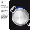 • Không thấm nước, hạn chế ngấm dầu mỡ hay cặn bẩn vào lớp đáy nhờ kết cấu liền khối kín hoàn toàn, không tạo khe hở giữa các lớp kim loại. Nhờ vậy, nồi luôn giữ được độ sáng bóng, không bị ố màu hay gỉ sét.