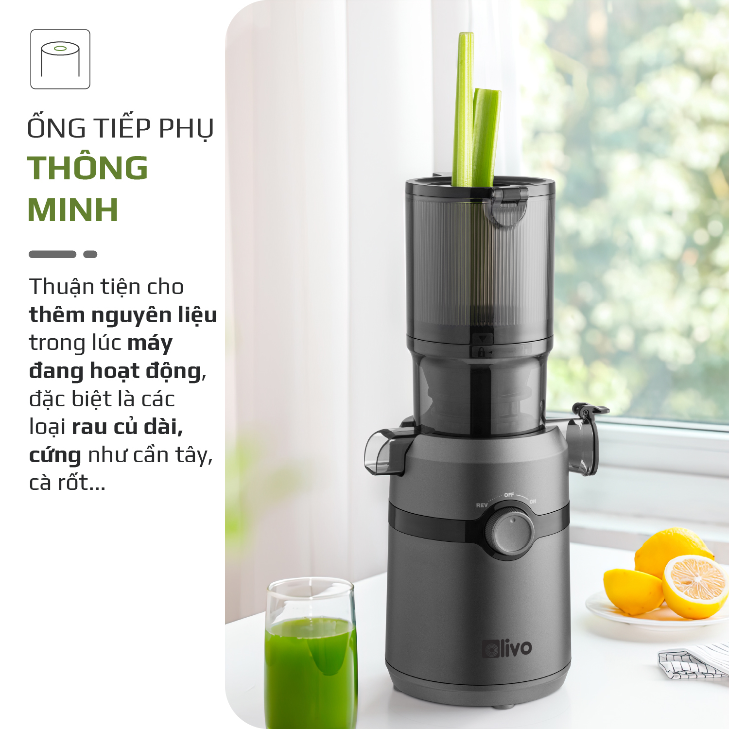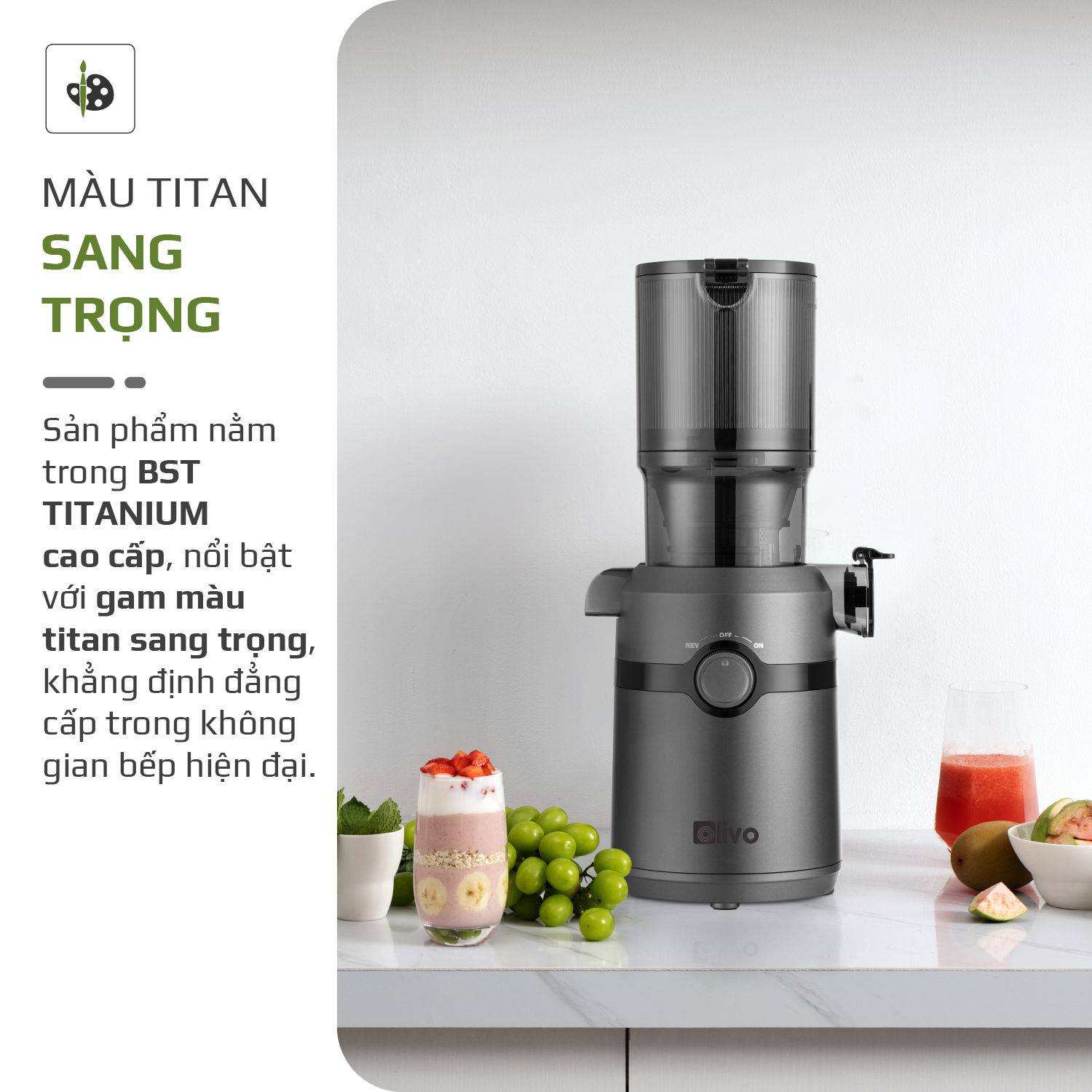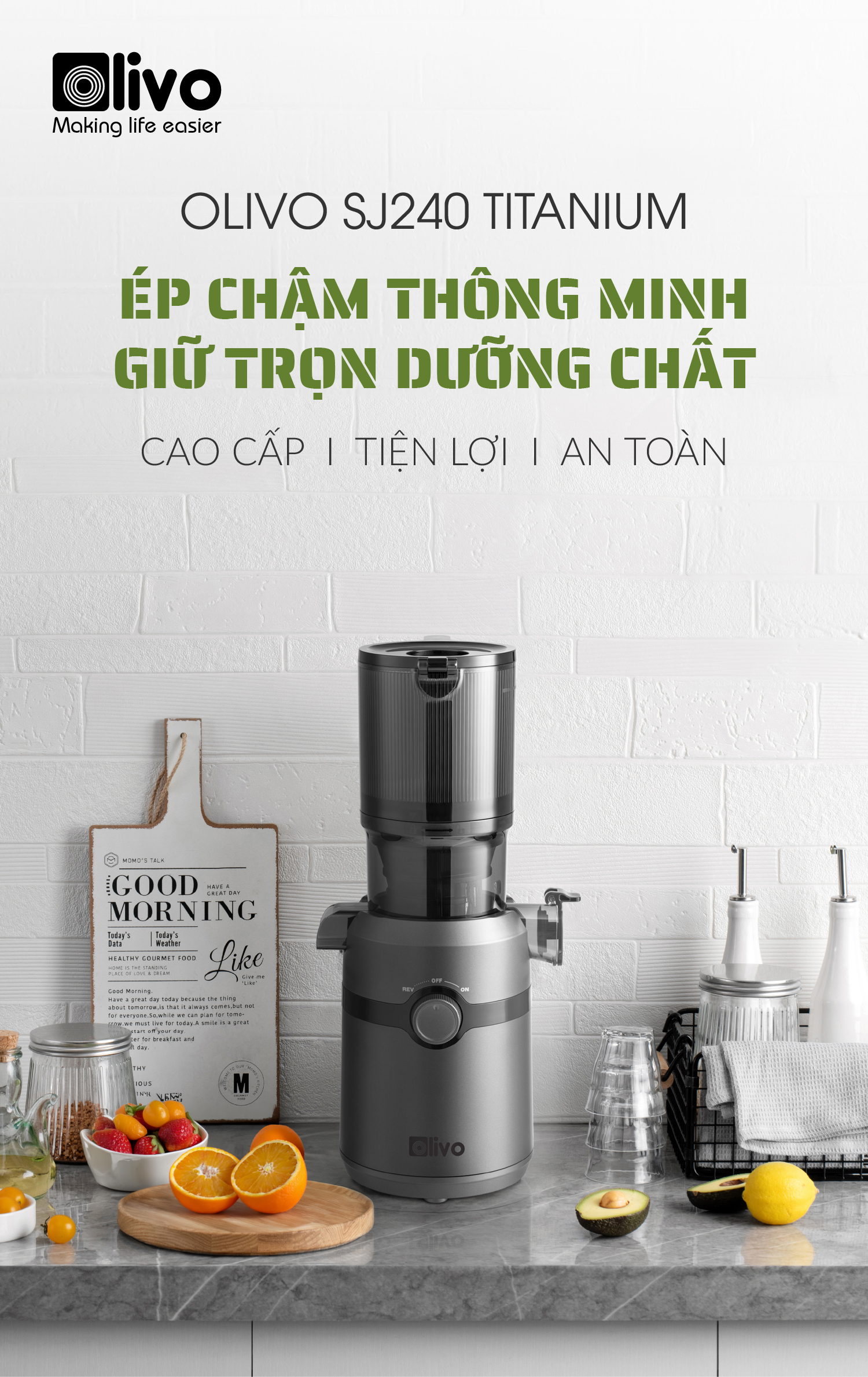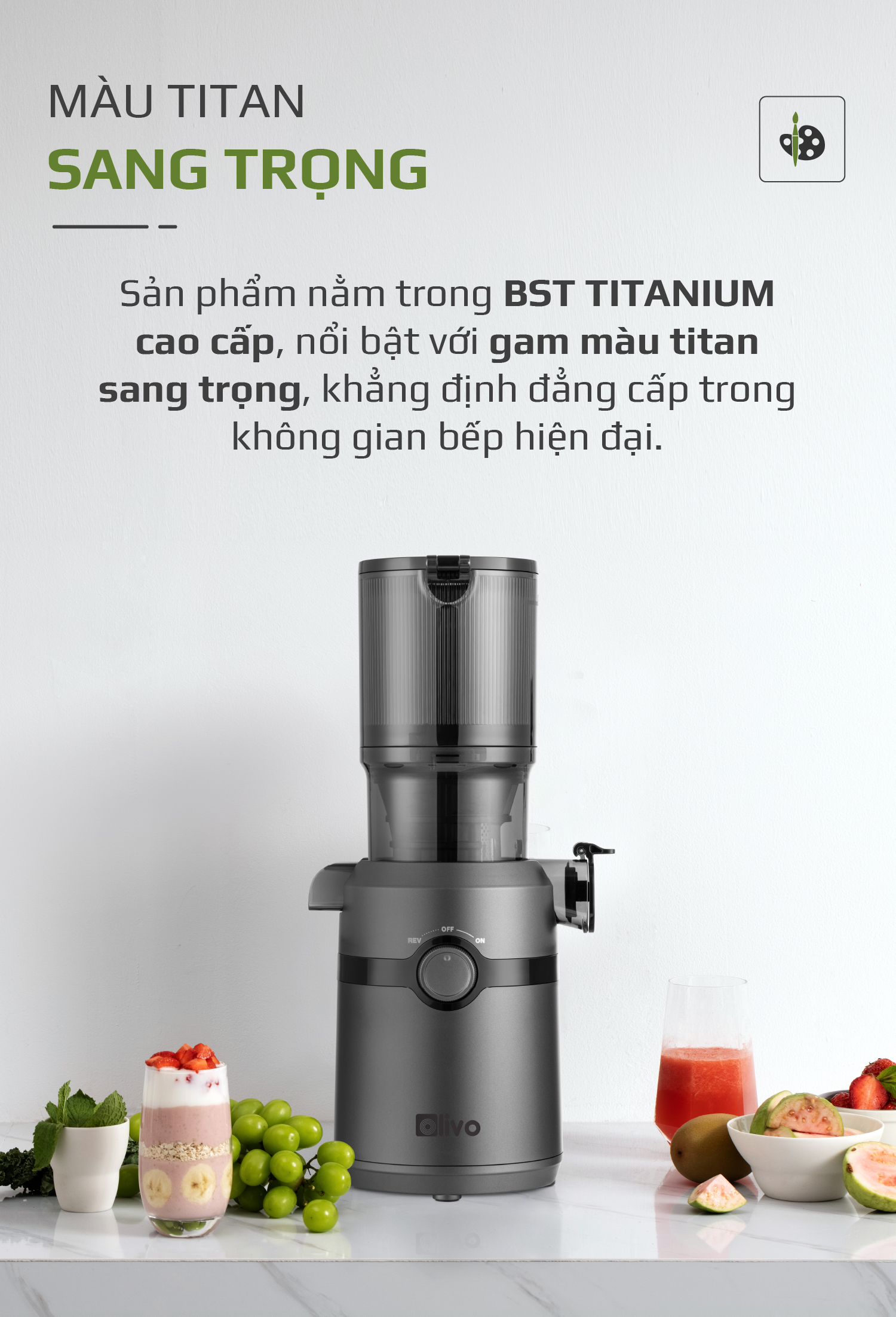Máy Ép Chậm OLIVO SJ240 – Phiên Bản Giới Hạn Màu Titanium – Khoang Tiếp Lớn – Giải Pháp Hoàn Hảo Cho Việc Ép Kết Hợp Trái Cây, Rau Củ
