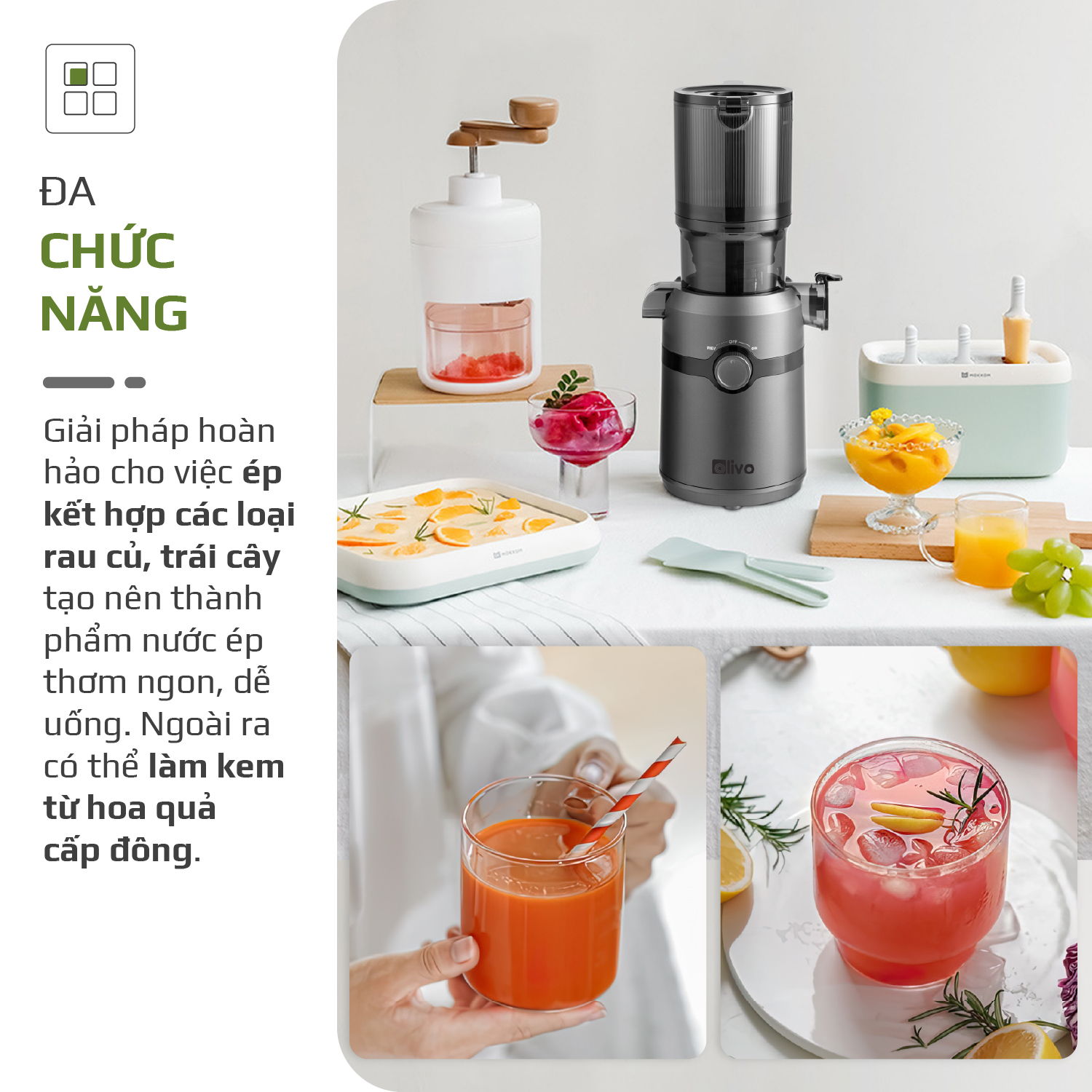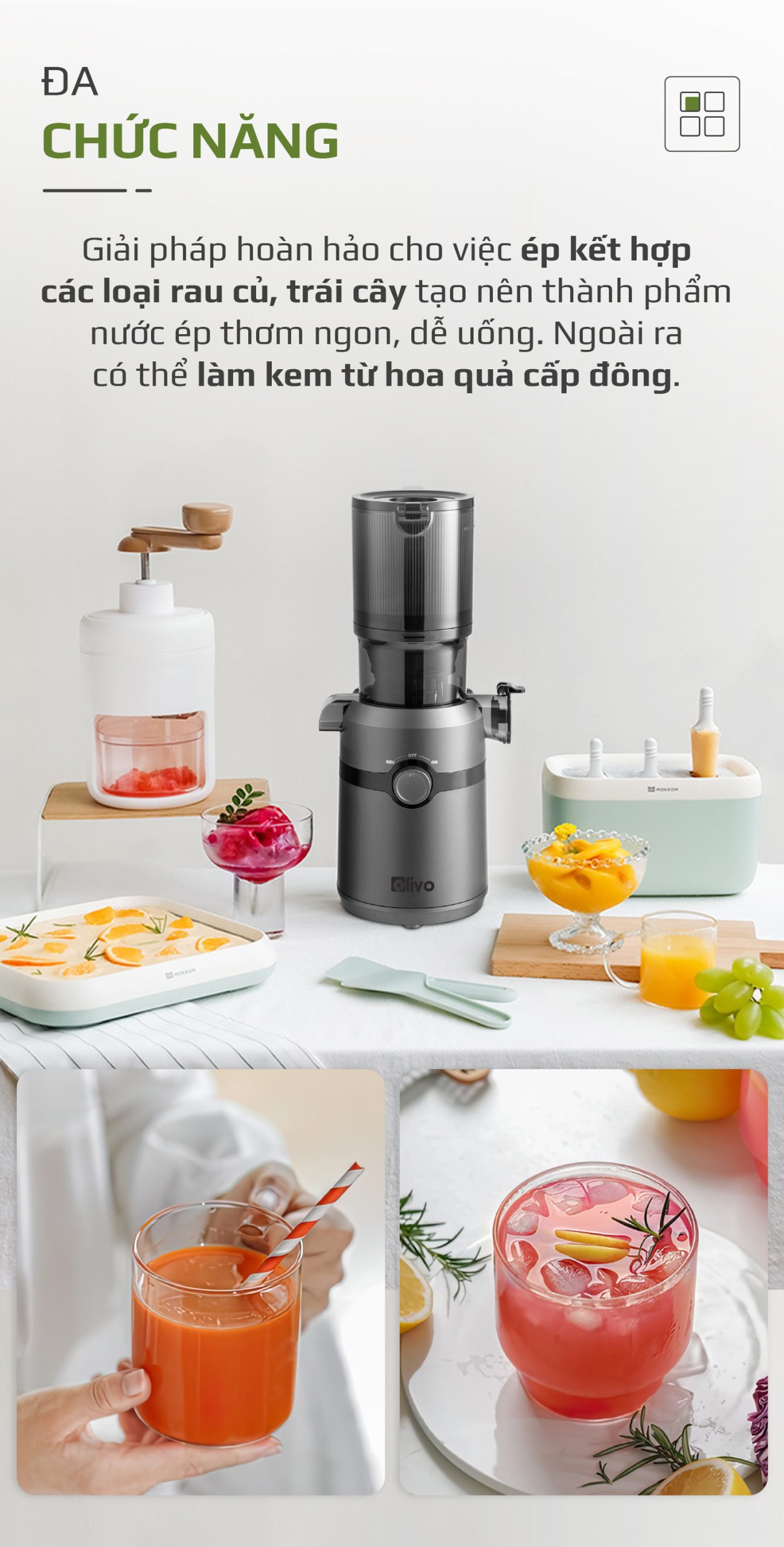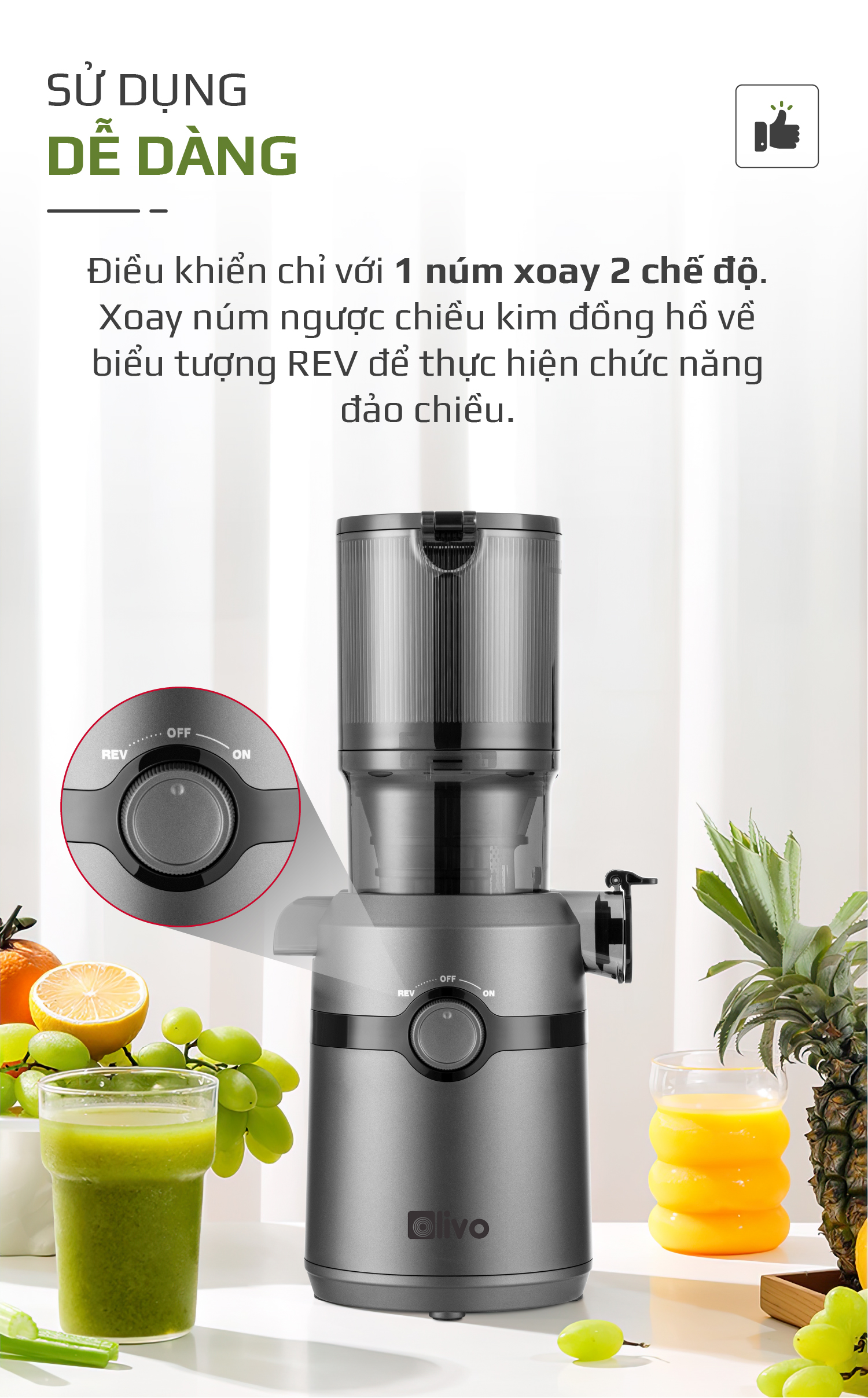 • Thoải mái sáng tạo những ly nước ép thơm ngon, đầy dinh dưỡng cho bản thân và gia đình với Máy ép chậm OLIVO SJ240