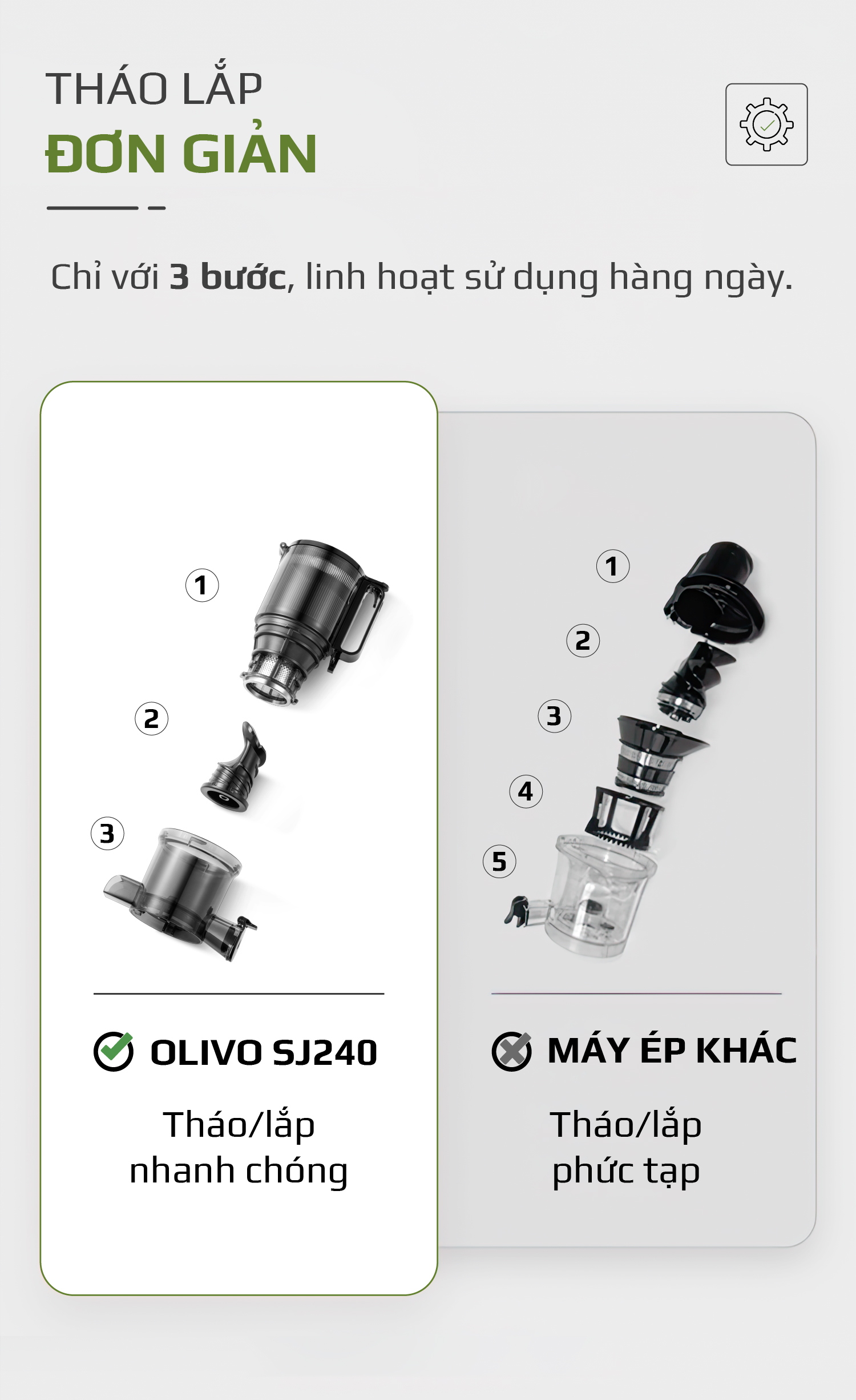 Khác biệt với những loại máy ép chuyên về ép rau hay ép hoa quả, Máy ép chậm OLIVO SJ240 sở hữu khả năng ép hiệu quả cả hai loại nguyên liệu này. Nhờ đó, bạn có thể dễ dàng tạo ra những ly nước ép đa dạng, bổ dưỡng chỉ với một thiết bị duy nhất.