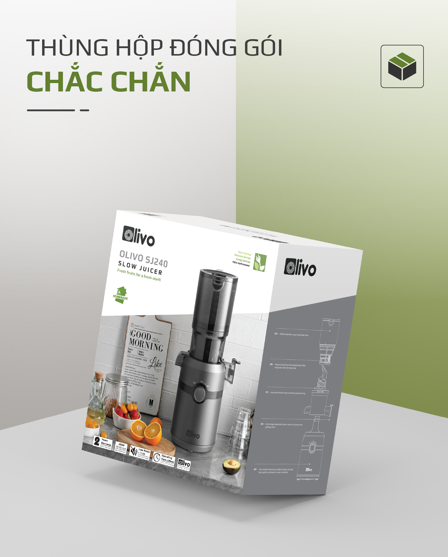 • Thùng hộp thể hiện tính cách của OLIVO luôn chắc chắn và ấn tượng đảm bảo an toàn và không bị móp méo trong quá trình vận chuyển.