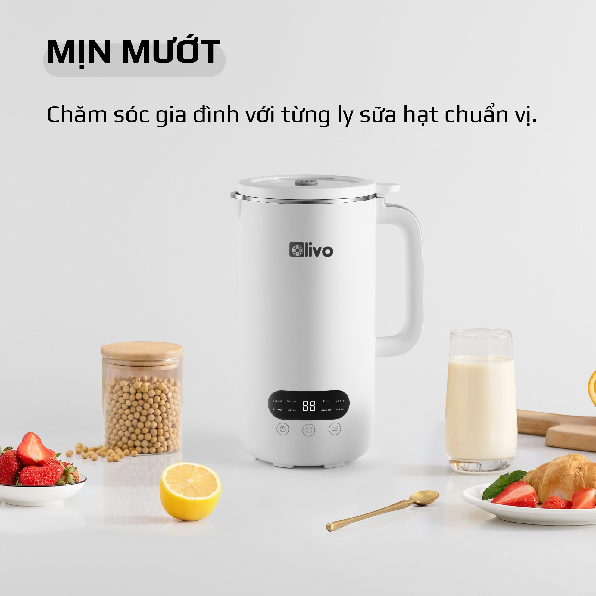 - Không cầu kỳ như cách nấu sữa truyền thống, không cần sử dụng nhiều dụng cụ lỉnh kỉnh với OLIVO CB1000 mọi công đoạn nấu ra một mẻ sữa thơm ngon sánh mịn chỉ gói gọn trong 3 bước đơn giản như sau: