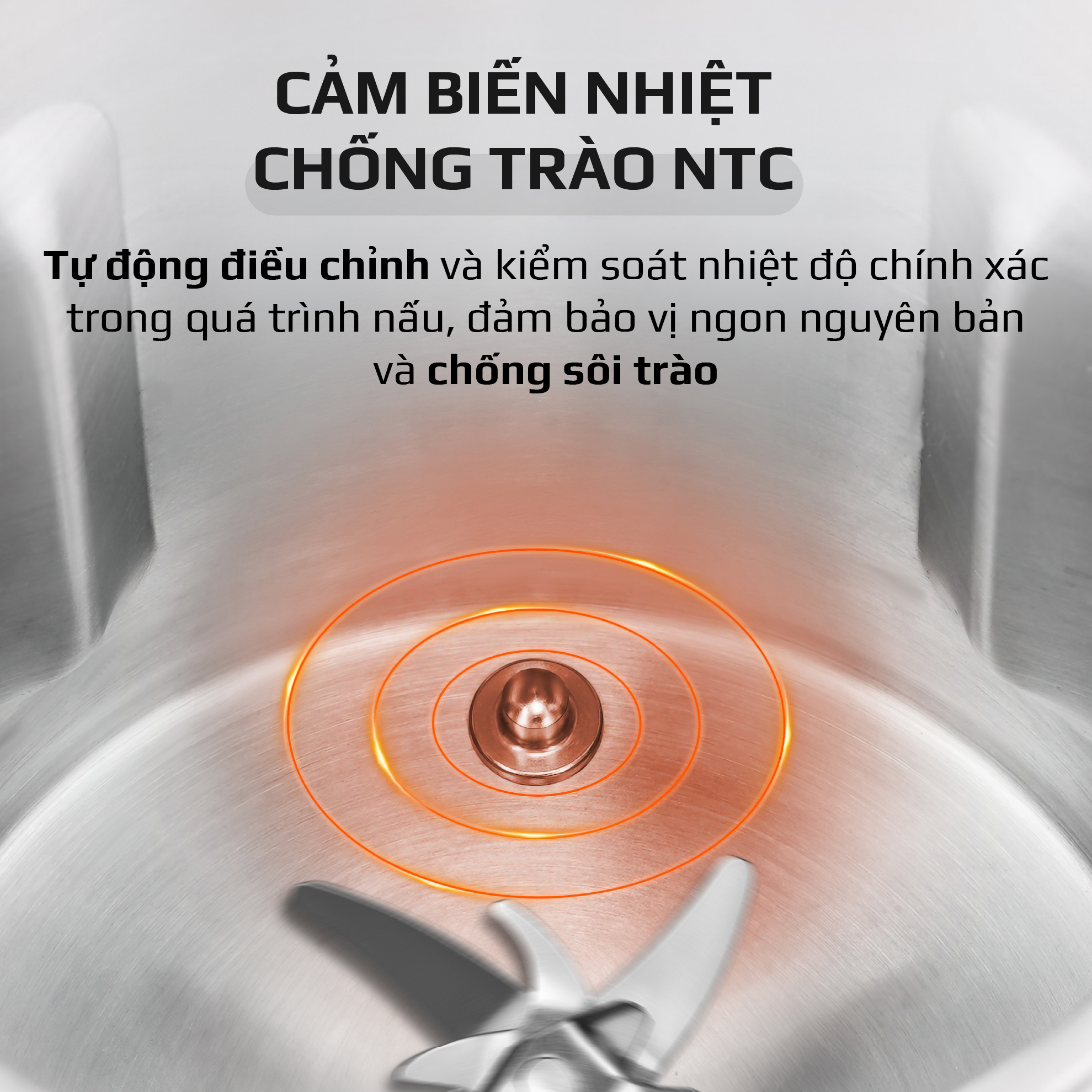 - Đối với sản phẩm OLIVO CB1000, máy được trang bị công nghệ cảm biến nhiệt thông minh NTC giúp kiểm soát nhiệt độ bên trong máy tránh tràn bình, khê cối rất hiệu quả.