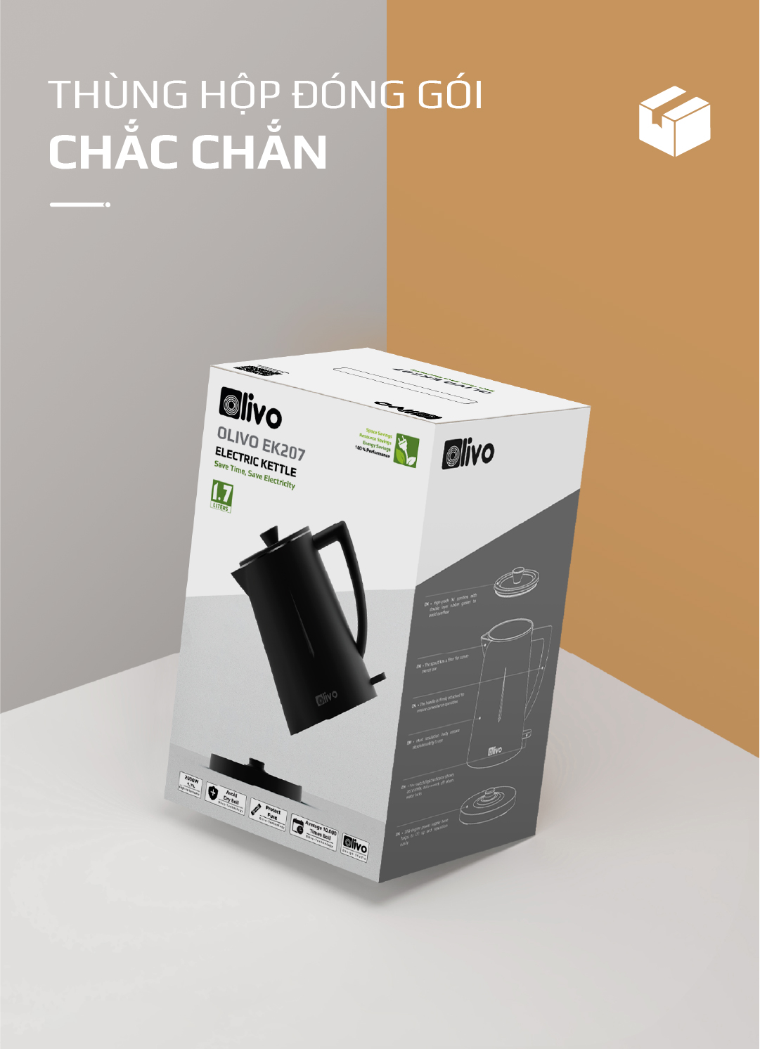 - Thùng hộp mang đậm phong cách OLIVO luôn chắc chắn và ấn tượng đảm bảo an toàn không bị móp méo trong quá trình vận chuyển.