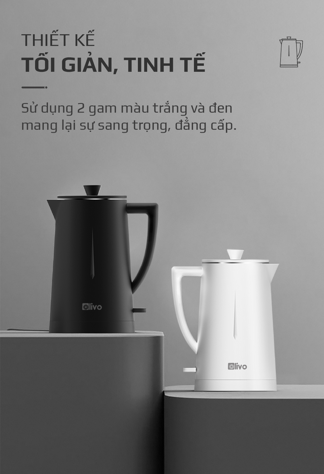 - Chính vì thế, trong quá trình nghiên cứu và sản xuất thế hệ ấm siêu tốc OLIVO EK207, nhà sản xuất đã chọn thiết kế ấm theo phong cách Lagom với gam màu chủ đạo là 2 màu trắng và đen theo tiêu chí đơn giản, tinh tế, sang trọng nhưng vẫn ấn tượng, trở thành điểm nhấn khi đặt ở bất kỳ không gian nào.