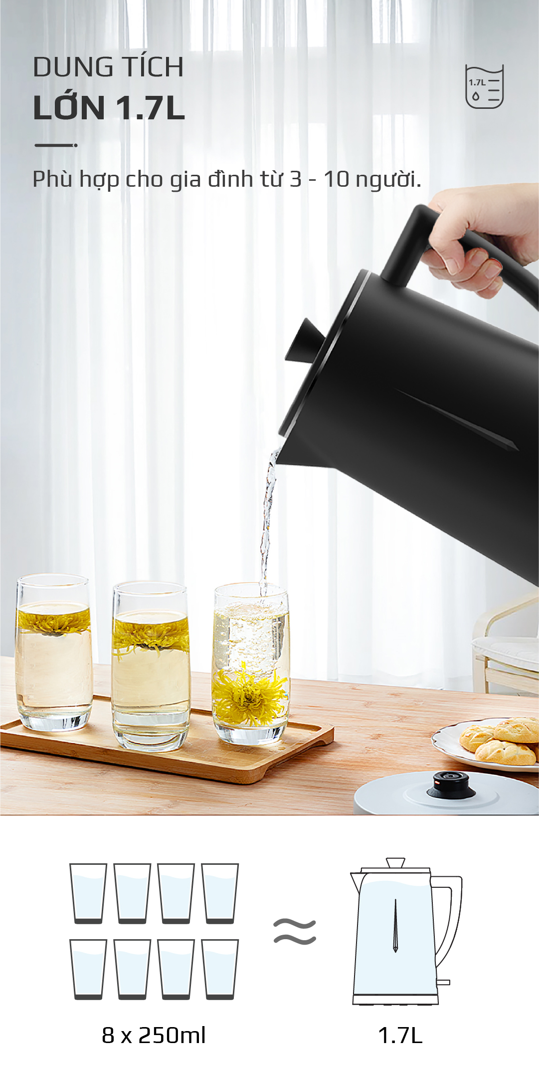 2. DUNG TÍCH 1.7L, ĐỦ CHO 3-10 NGƯỜI