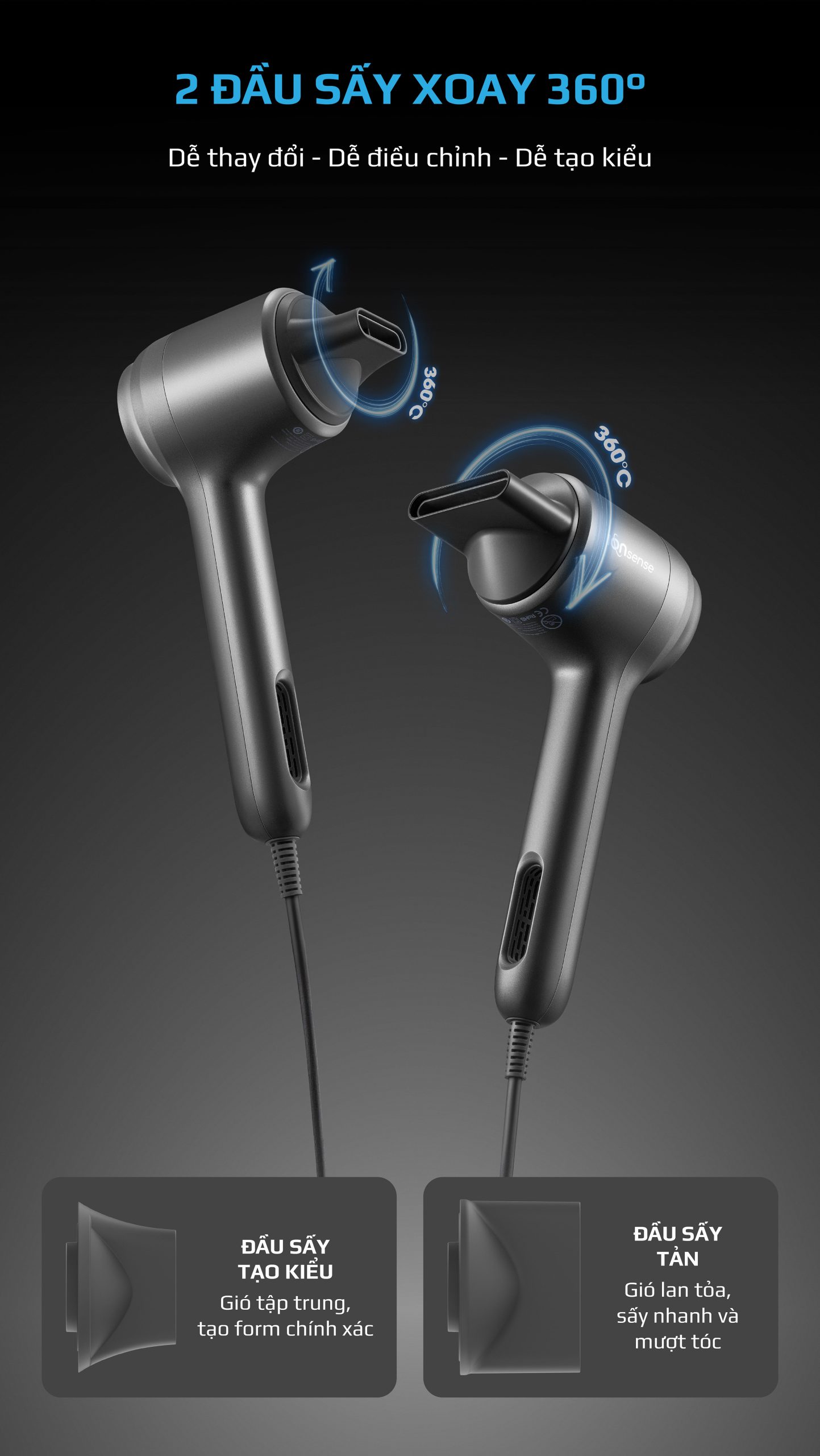 6. 2 ĐẦU SẤY XOAY 360° – DỄ TẠO KIỂU, DỄ KIỂM SOÁT