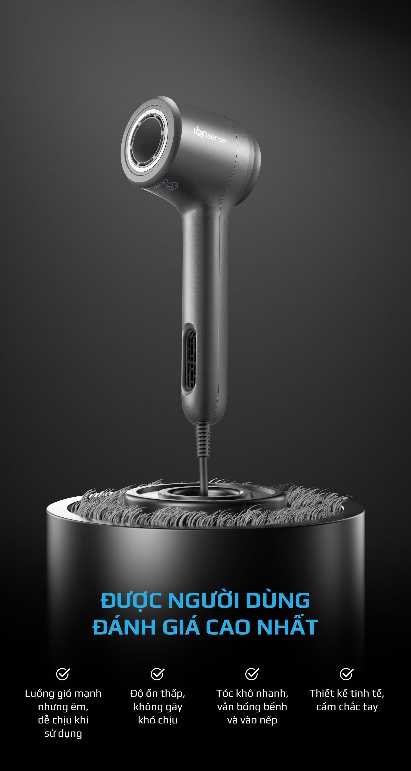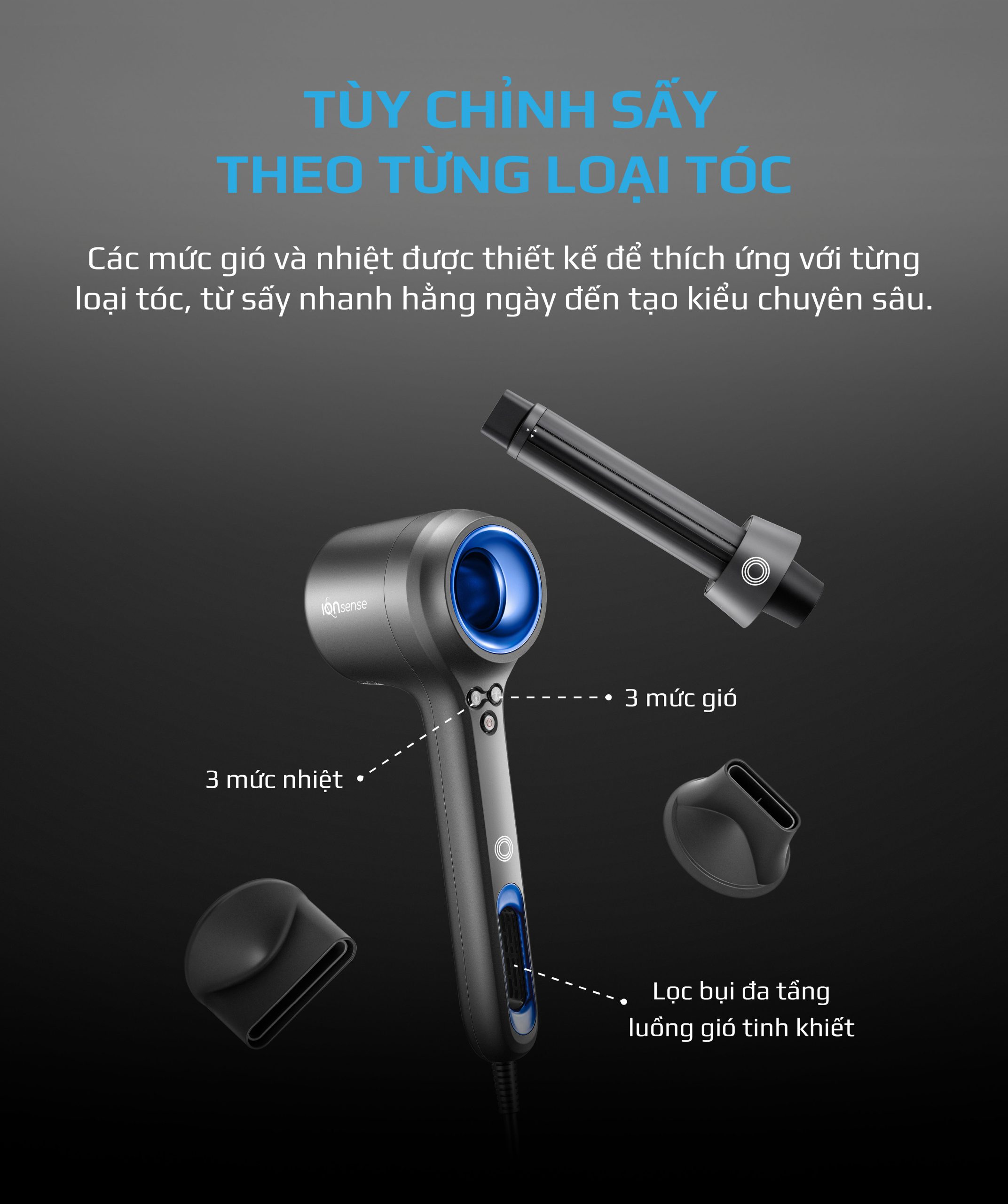 - Nhờ khả năng tùy chỉnh linh hoạt này, IonSense đáp ứng trọn vẹn từ nhu cầu sấy nhanh hằng ngày đến tạo kiểu chuyên sâu, giúp tóc khô đều, dễ vào form mà không bị quá tải nhiệt.