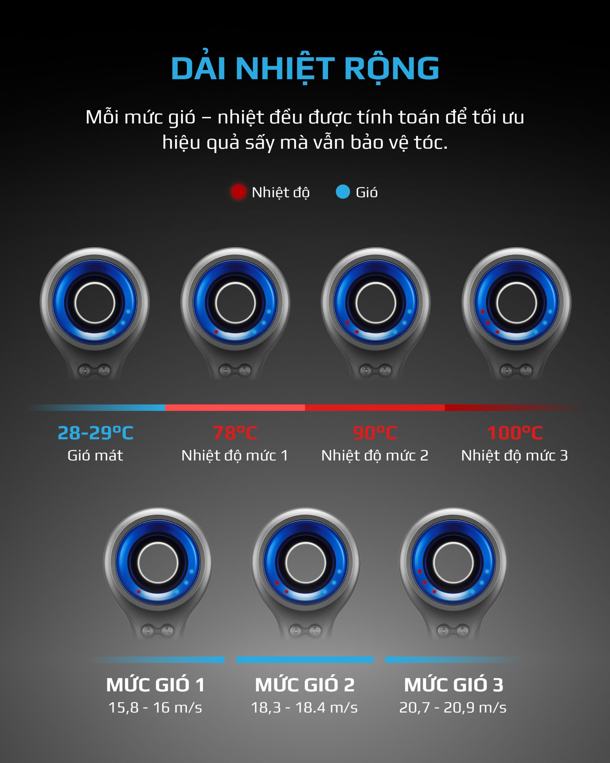 5. DẢI NHIỆT & MỨC GIÓ RỘNG – LINH HOẠT THEO TỪNG KIỂU TÓC