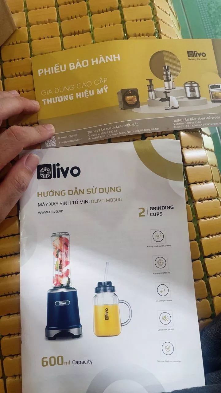 - OLIVO MB300 là một chiếc máy xay sinh tố mini với thiết kế nhỏ gọn, tiện lợi. Máy có dung tích 600ml, đủ dùng cho 1-3 người.