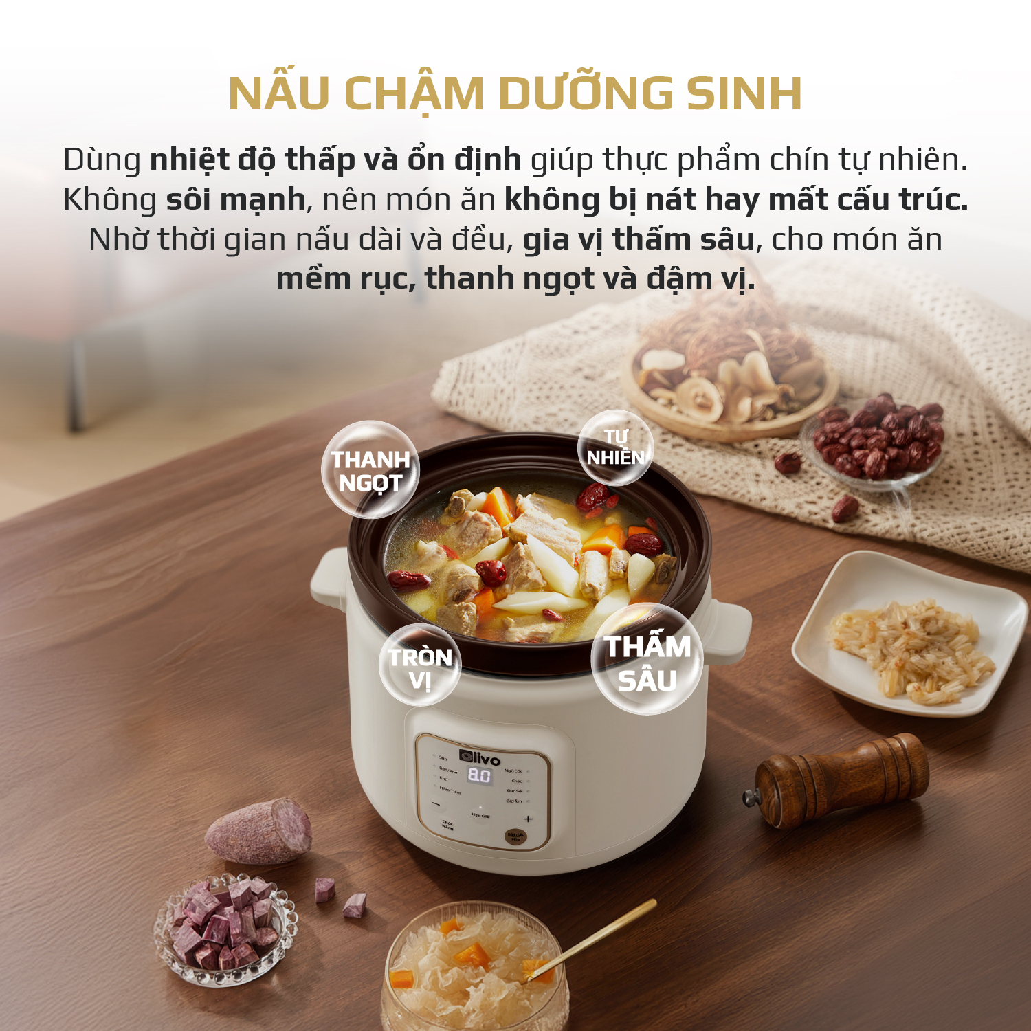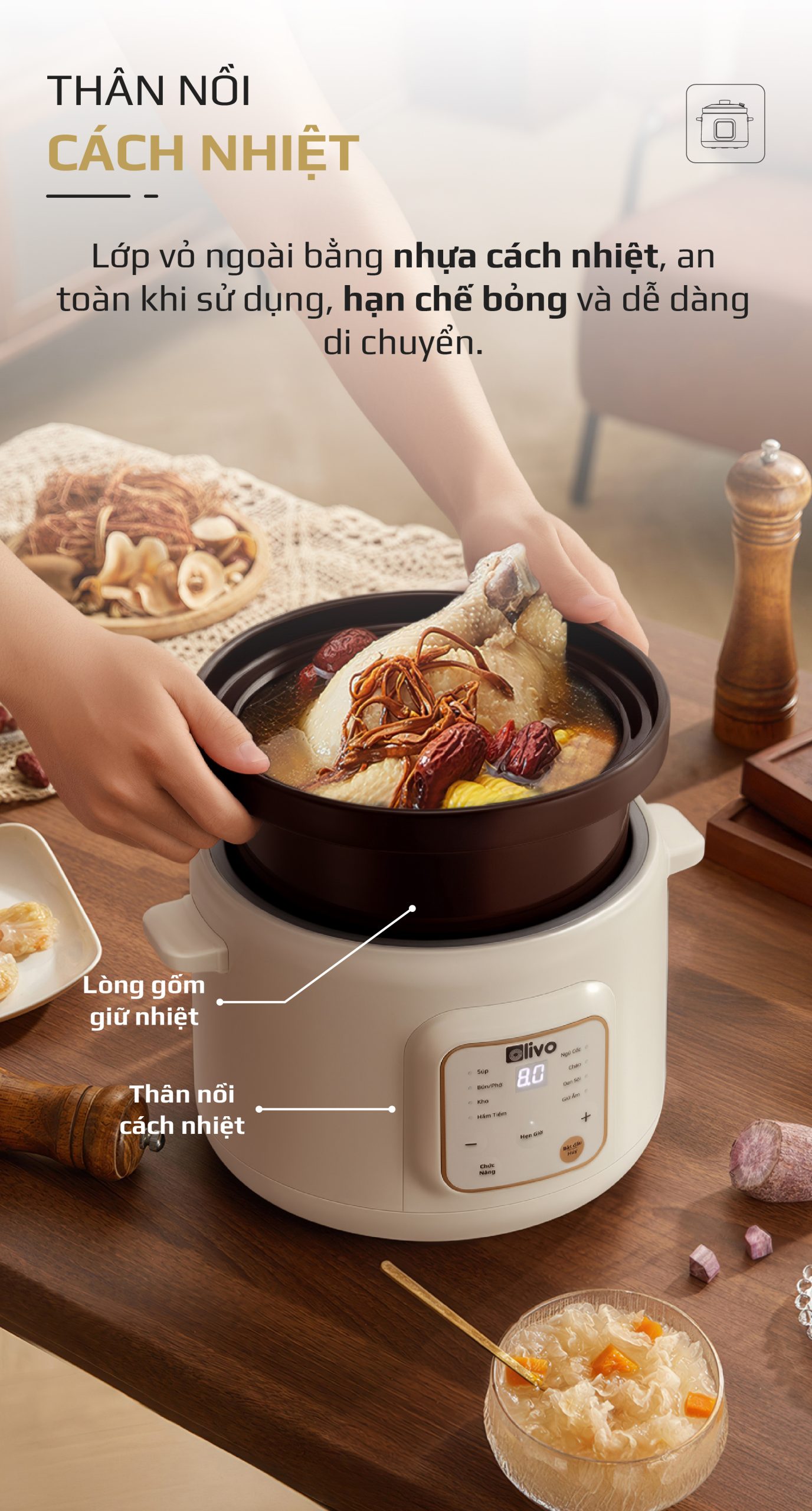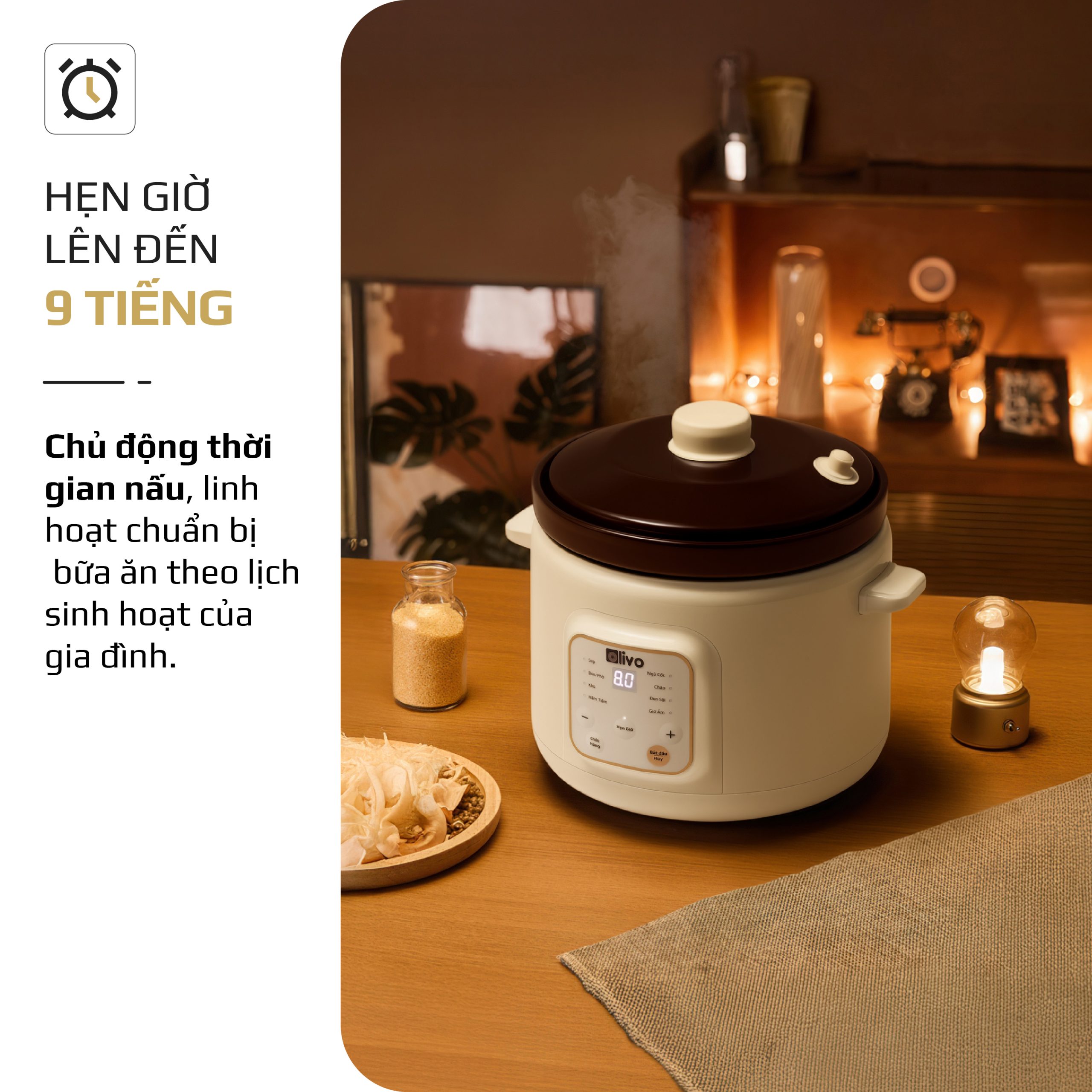 - OLIVO OSC30 không chỉ là một chiếc nồi nấu chậm, mà là trợ lý bếp núc thông minh giúp bạn chuẩn bị những bữa ăn bổ dưỡng, tiết kiệm thời gian, giữ trọn yêu thương và sự an tâm cho cả gia đình.