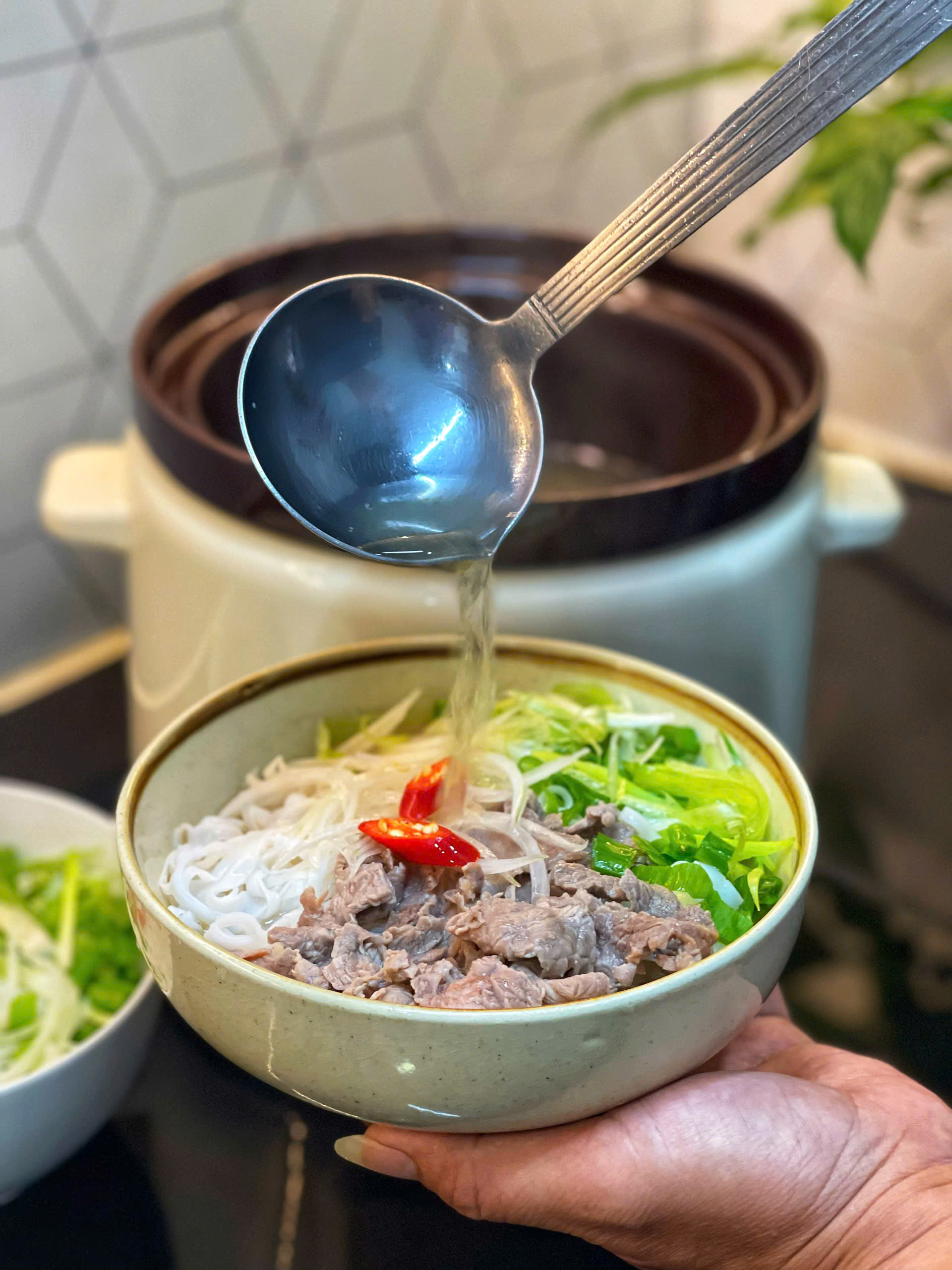 - Bún/Phở: Nước dùng trong, thơm và ngọt tự nhiên, không đục, không gắt.