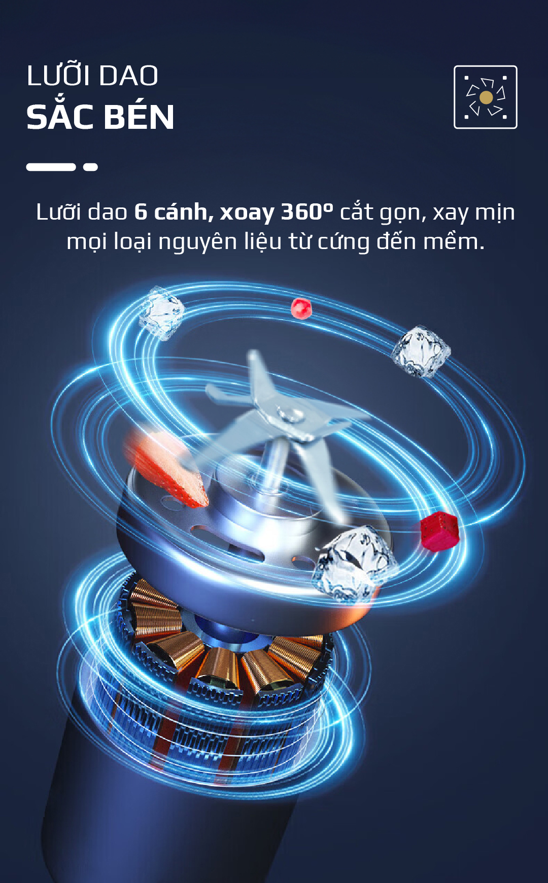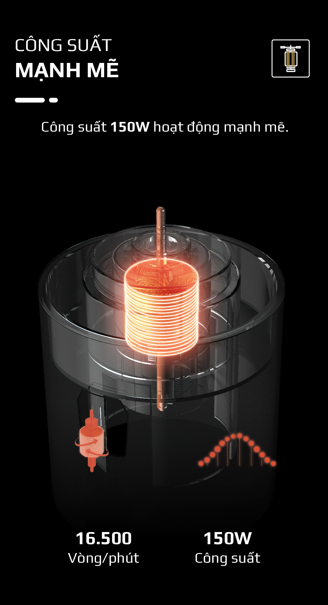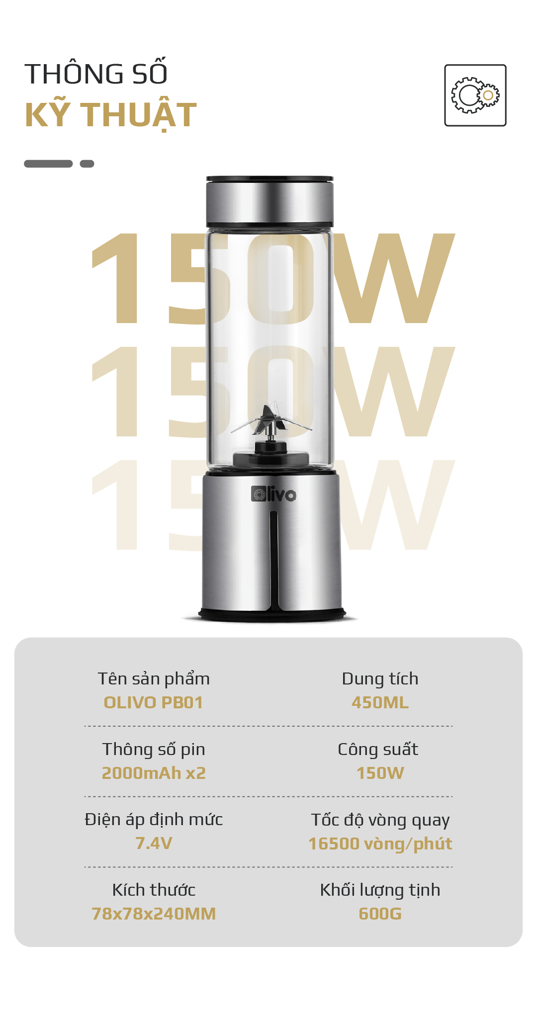 - Với công suất 150W máy hoạt động mạnh mẽ xay nhanh, gọn, nhuyễn mịn mọi loại nguyên liệu. Đặc biệt máy hoạt động rất êm, không ảnh hưởng đến mọi người xung quanh.