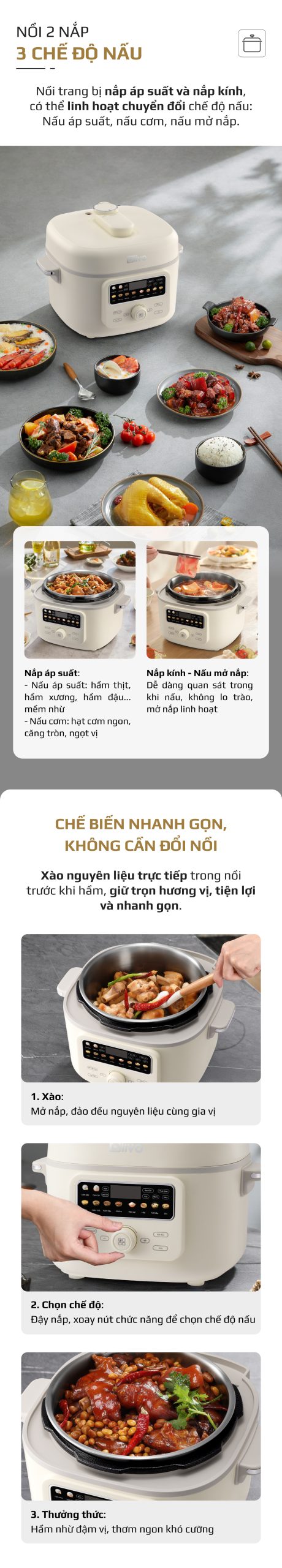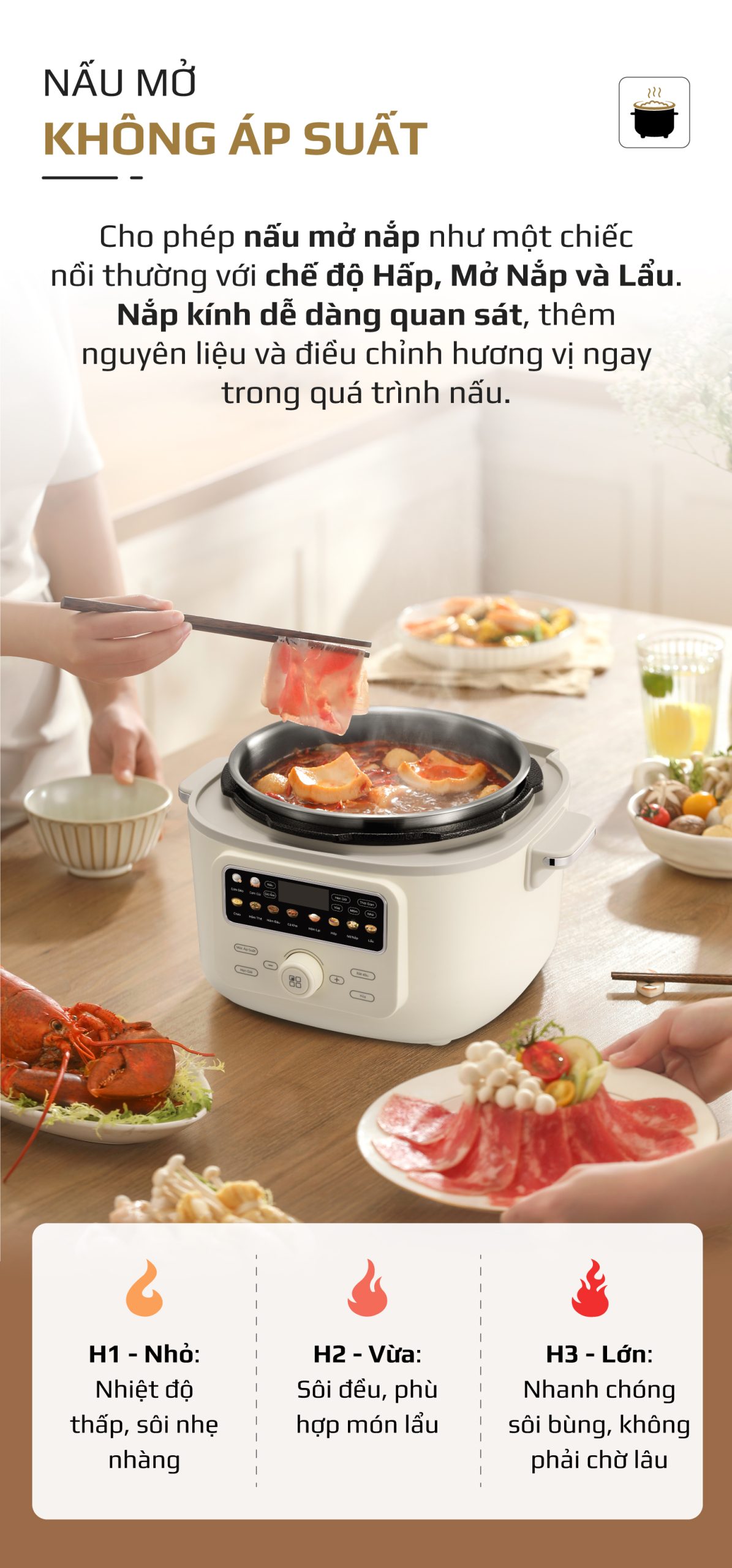 8. CHẾ ĐỘ NẤU MỞ KHÔNG ÁP SUẤT, LINH HOẠT NHƯ NỒI THƯỜNG