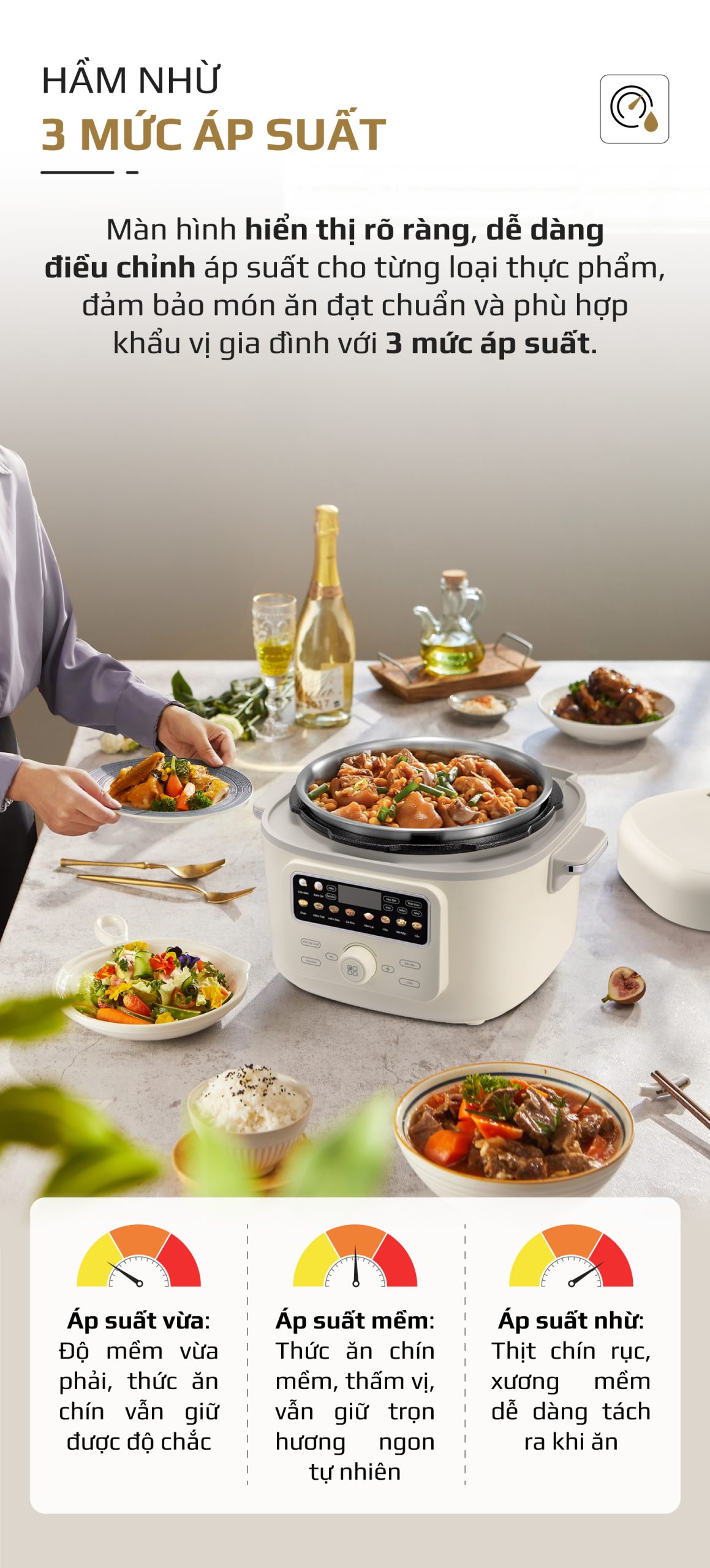 7. HẦM NHỪ 3 MỨC ÁP SUẤT – TÙY CHỈNH THEO KHẨU VỊ GIA ĐÌNH