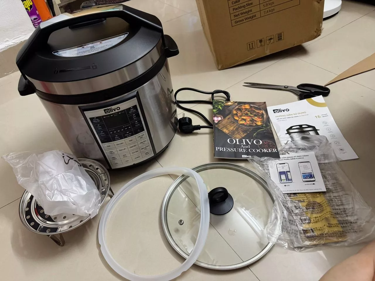 - Nồi áp suất điện đa năng OLIVO PC60 với 2 loại nắp khác nhau có thể tháo rời tùy biến theo các chế độ khác nhau.