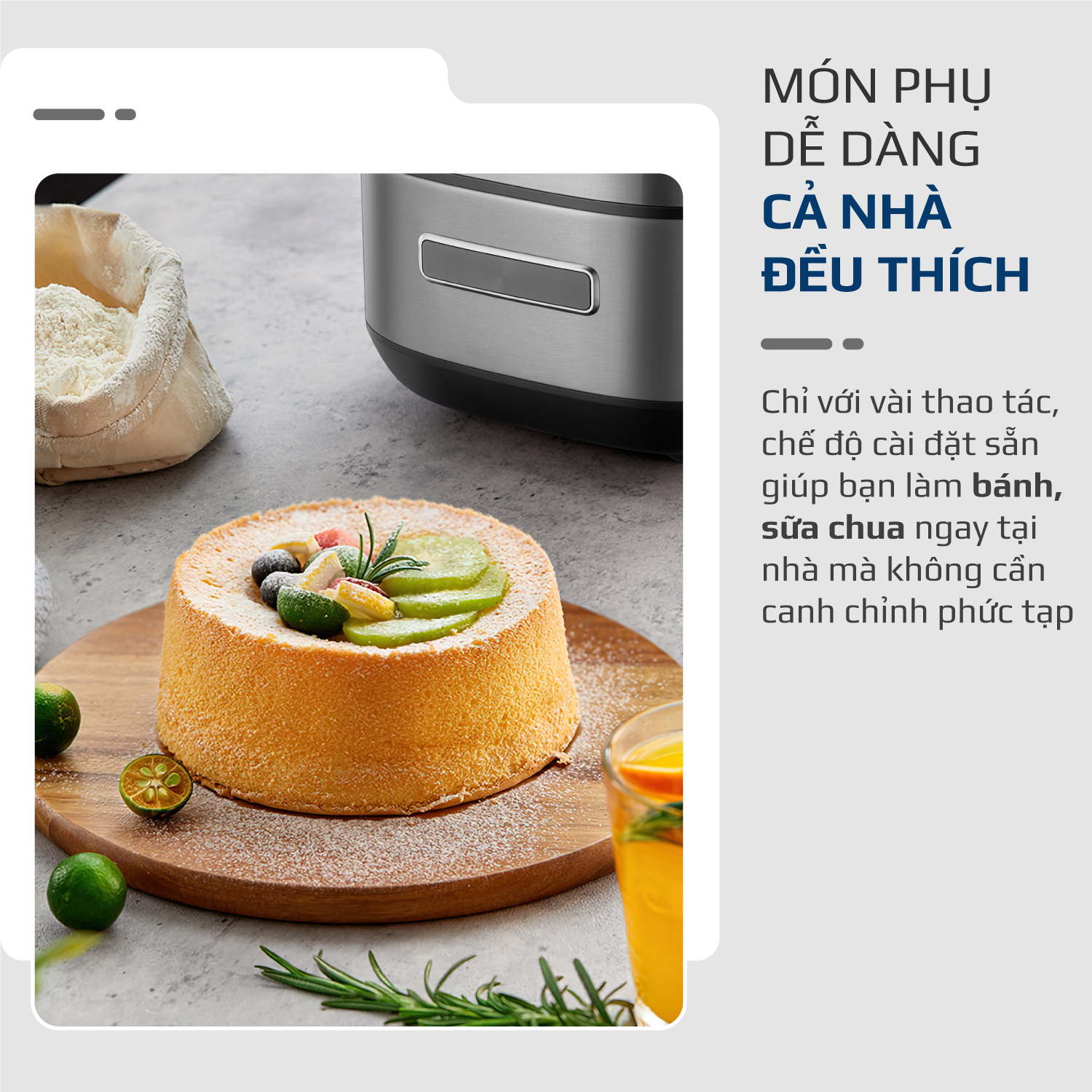 - Chế biến đa dạng các món hấp như hấp bánh bao, hấp khoai, hấp thịt, hấp rau củ,… tiện lợi với chế độ hấp cài sẵn và phụ kiện xửng hấp INOX 304 đi kèm nồi.