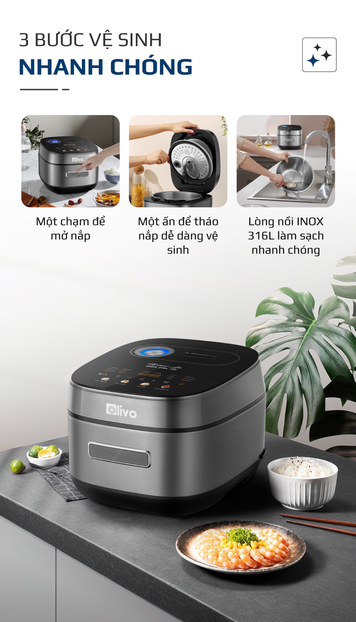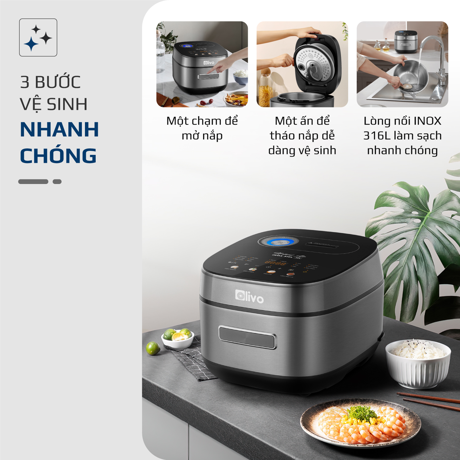 Một trong những yếu tố quan trọng nhất khi chọn nồi cơm điện chính là chất liệu lòng nồi, bởi nó ảnh hưởng trực tiếp đến sức khỏe và hương vị món ăn. Nồi cơm điện cao tần OLIVO RC900IH sử dụng lòng nồi làm từ INOX 316L, loại vật liệu cao cấp có độ bền vượt trội, chống ăn mòn và chịu nhiệt cực kỳ tốt.