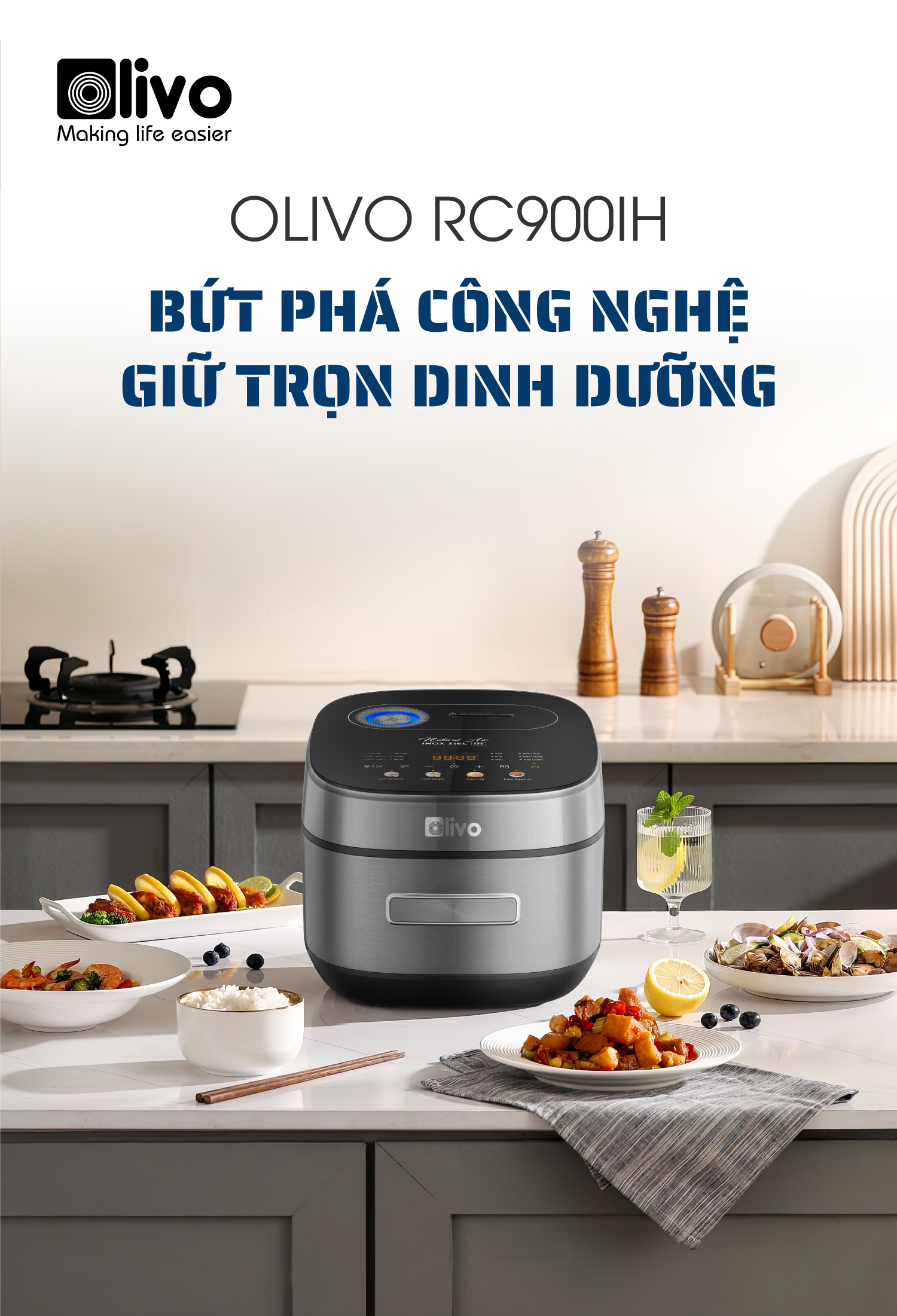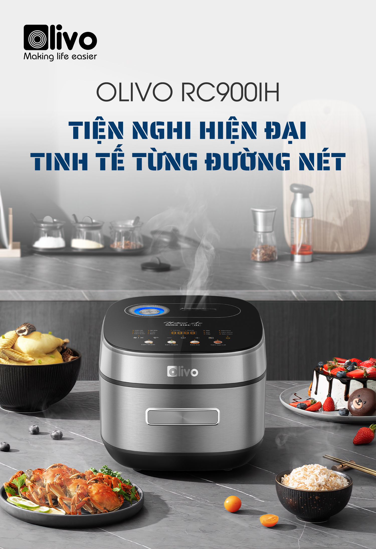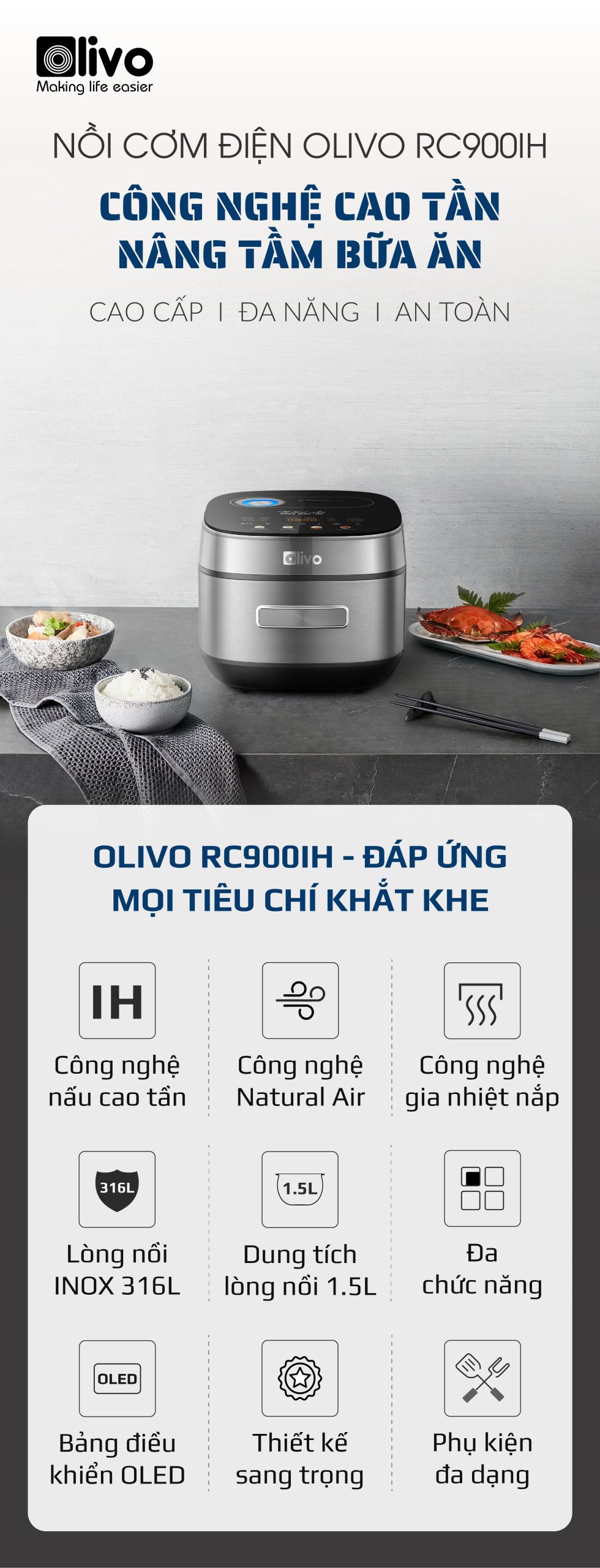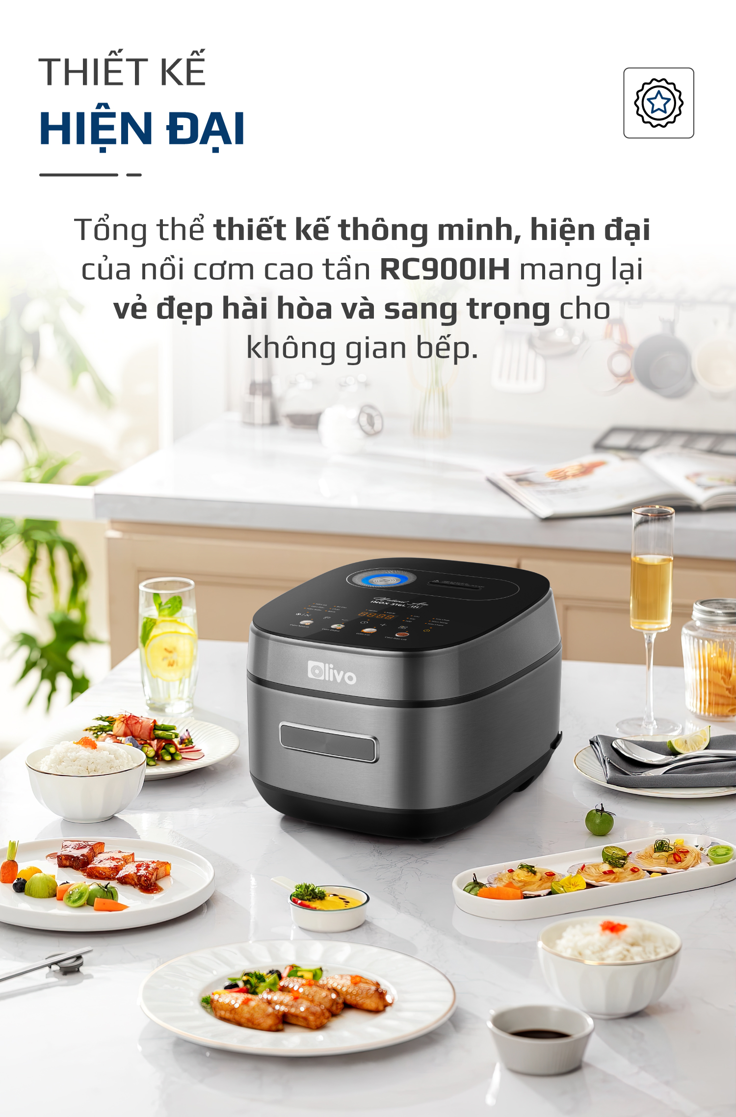- Nồi cơm điện cao tần OLIVO RC900IH là sự lựa chọn hoàn hảo cho những ai mong muốn nâng tầm chất lượng bữa ăn gia đình. Với công nghệ hiện đại, thiết kế tinh tế và hàng loạt tính năng vượt trội, sản phẩm không chỉ mang lại sự tiện nghi mà còn đảm bảo sức khỏe và trải nghiệm nấu nướng hoàn hảo. Dưới đây là những ưu điểm nổi bật của nồi cơm điện cao tần này.