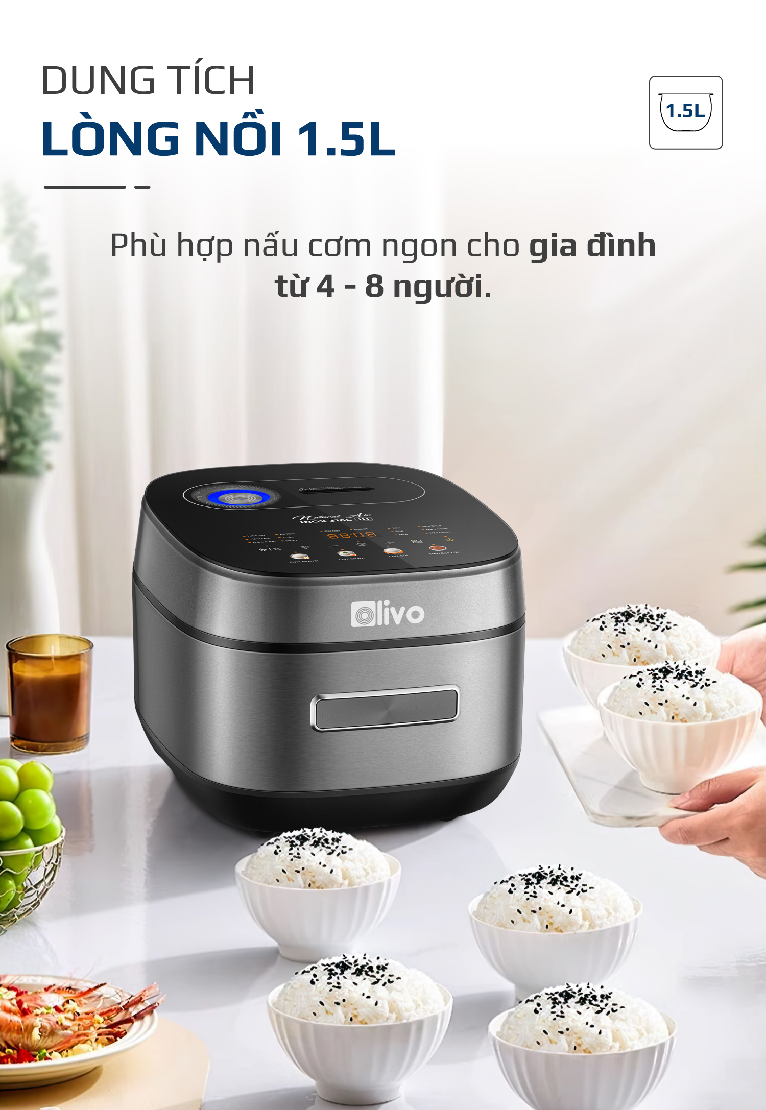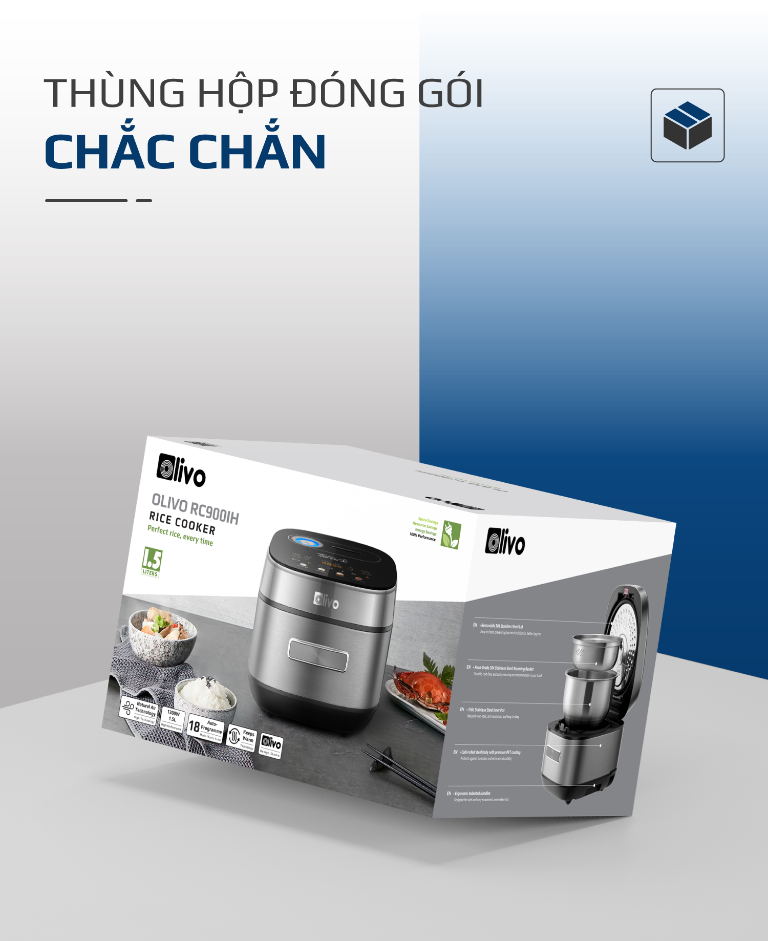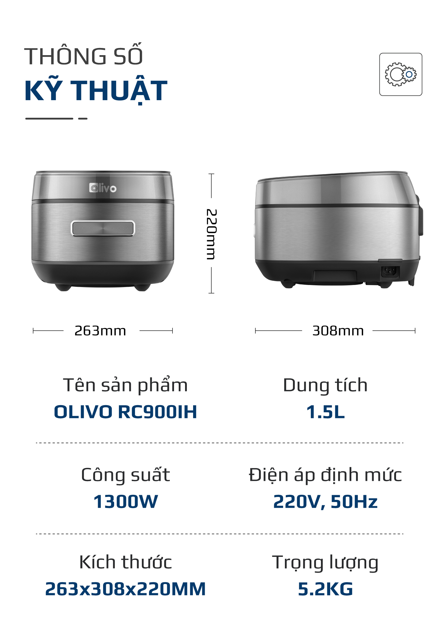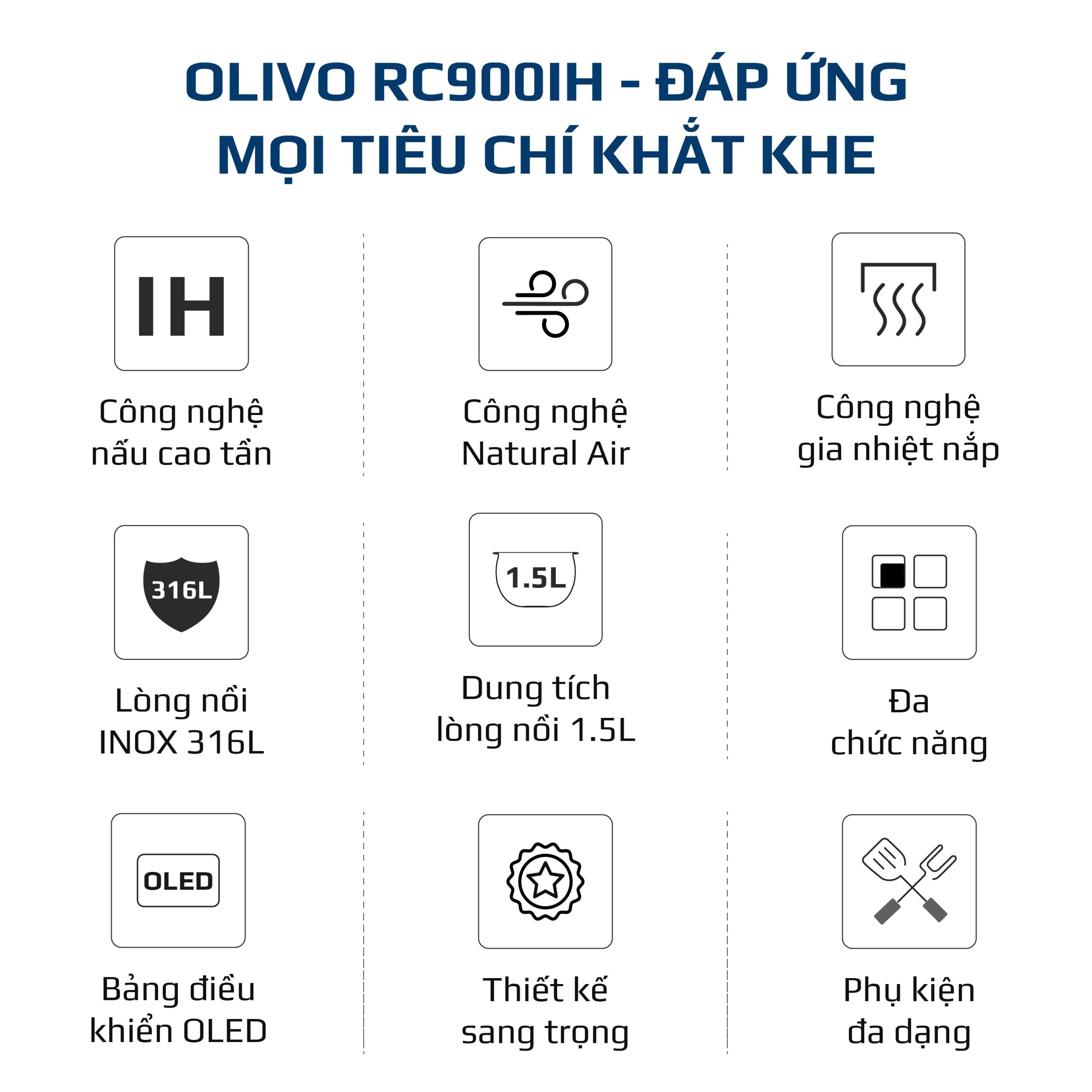 - Nồi cơm điện cao tần OLIVO RC900IH là sự lựa chọn hoàn hảo cho những ai mong muốn nâng tầm chất lượng bữa ăn gia đình. Với công nghệ hiện đại, thiết kế tinh tế và hàng loạt tính năng vượt trội, sản phẩm không chỉ mang lại sự tiện nghi mà còn đảm bảo sức khỏe và trải nghiệm nấu nướng hoàn hảo. Dưới đây là những ưu điểm nổi bật của nồi cơm điện cao tần này.