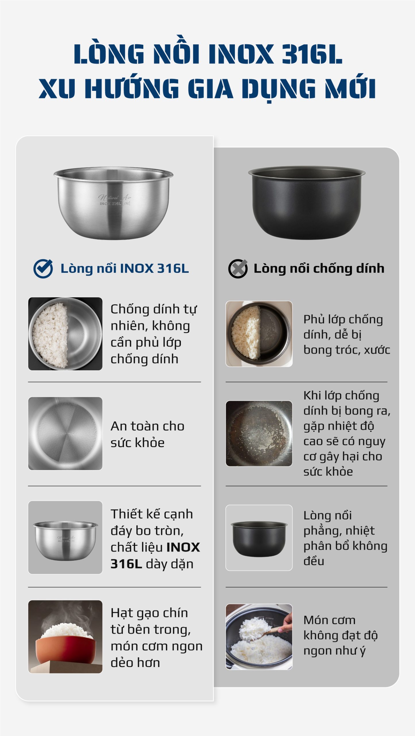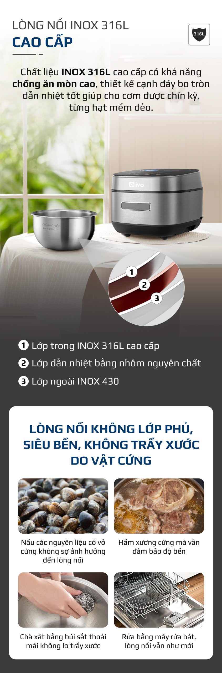 1. LÒNG NỒI INOX 316L CAO CẤP AN TOÀN