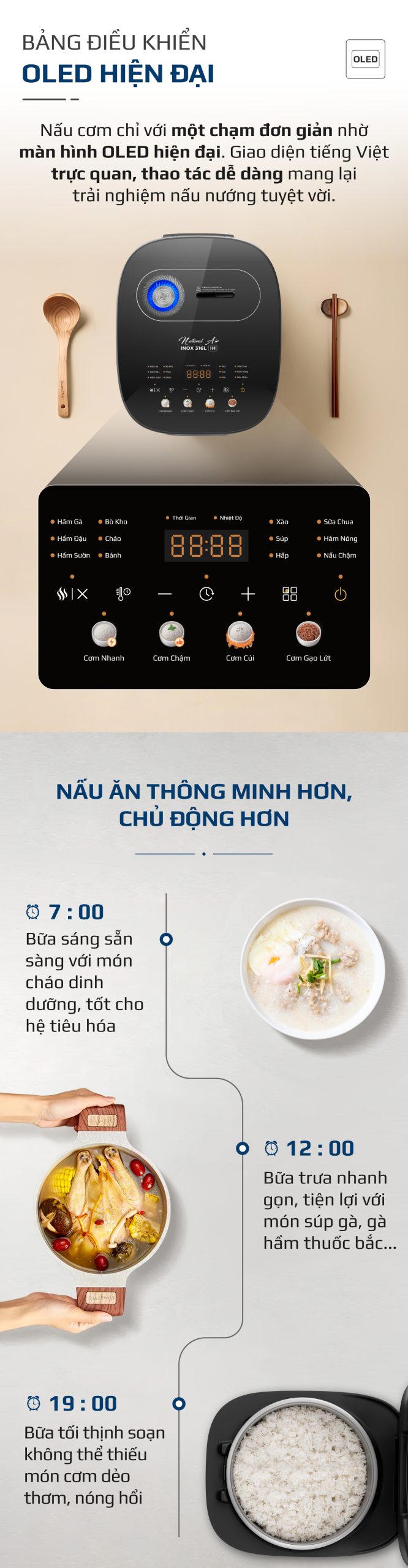 Lưu giữ hương vị: Lòng nồi INOX giúp cơm giữ trọn hương vị tự nhiên, mang đến trải nghiệm ăn uống hoàn hảo.