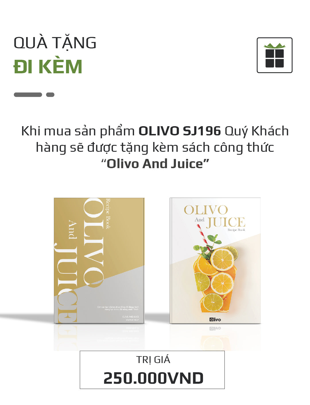 • OLIVO SJ196 là dòng máy ép công nghệ mới từ Mỹ có khả năng ép kiệt đến 98% cùng thiết kế trang nhã, sang trọng. Đặc biệt với phần ống tiếp nguyên liệu rất lớn lên tới 13cm có thể ép trái cây nguyên trái giúp tiết kiệm thời gian sơ chế. Máy sử dụng động cơ AC Motor cao cấp vì vậy hoạt động vô cùng êm ái đem lại trải nghiệm hoàn toàn khác biệt cho người dùng. OLIVO SJ196 hứa hẹn sẽ làm hài lòng cả những khách hàng khó tính nhất.