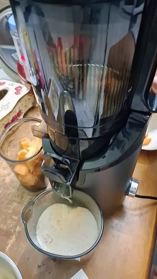 10 điểm cho hình thức & tính tiện lợi: - Ít bộ phận (chỉ 3 phần) - Dễ vệ sinh, mỗi bộ phận đều khá rộng bên trong, ko nhiều ngóc ngách nên rửa dưới vòi nước + bàn chải chà sơ là ok - Máy cực êm, nghe như tiếng quạt. Ko bị ồn như các máy thường - Ko cần đứng tiếp nhiên liệu, phần trong máy rộng, mình đổ hết vào 1 lần, máy tự chạy (nhớ cắt nhỏ nguyên liệu như hướng dẫn)