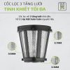 - Cốc lọc với 3 tầng lưới nhỏ dần, hỗ trợ ép kiệt hoàn toàn thực phẩm và cho ra thành phẩm có độ tinh khiết cao nhất.