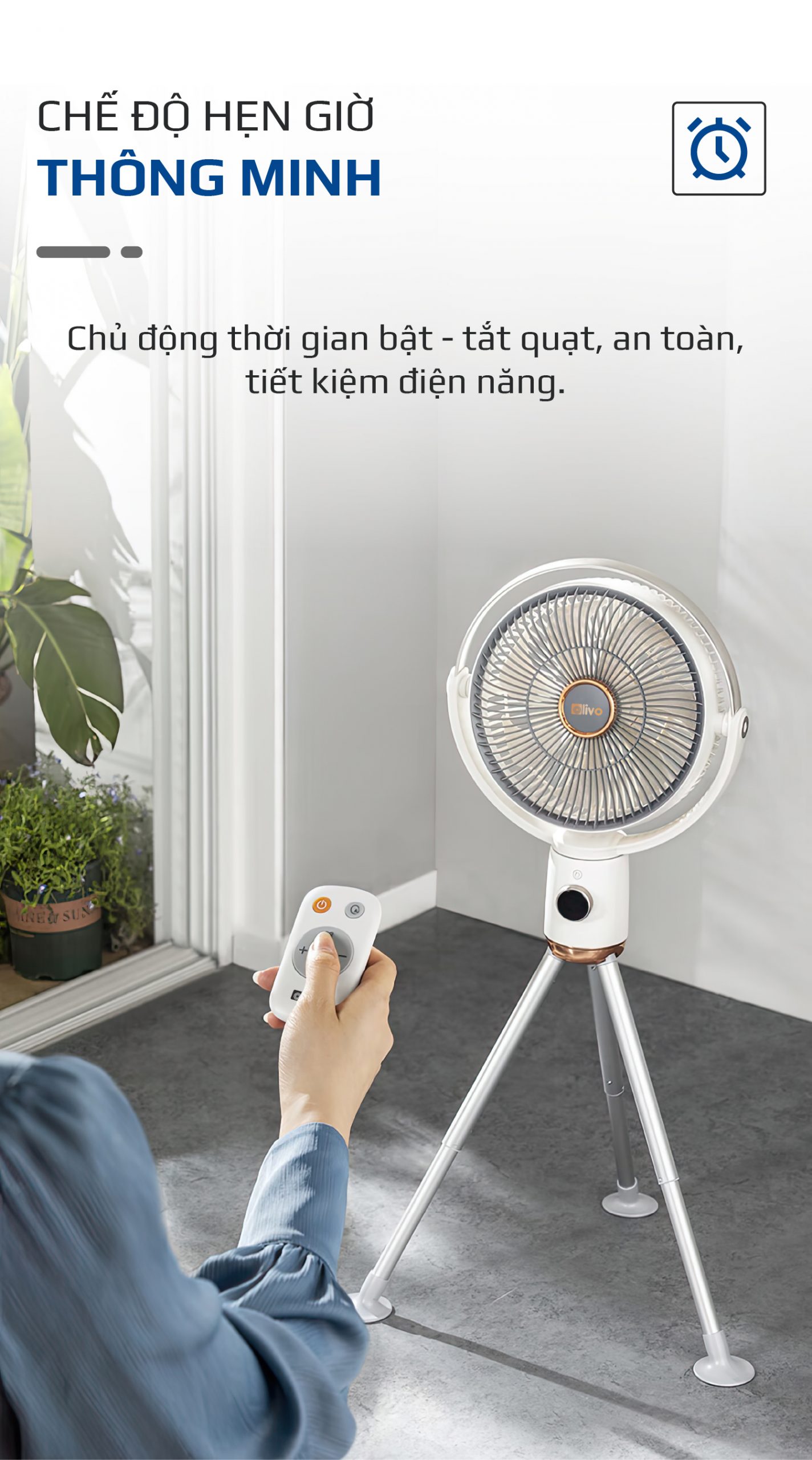 • Ở một chiếc quạt hiện đại thì không thể thiếu được chức năng hẹn giờ giúp người dùng có thể chủ động được thời gian bật – tắt quạt đảm bảo an toàn, tiết kiệm điện năng.