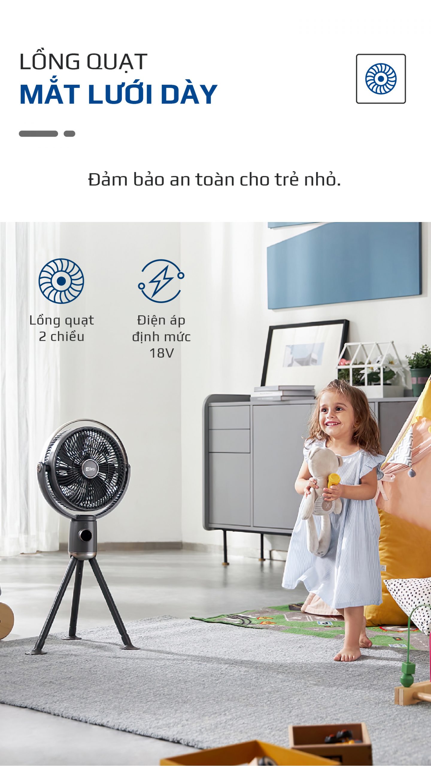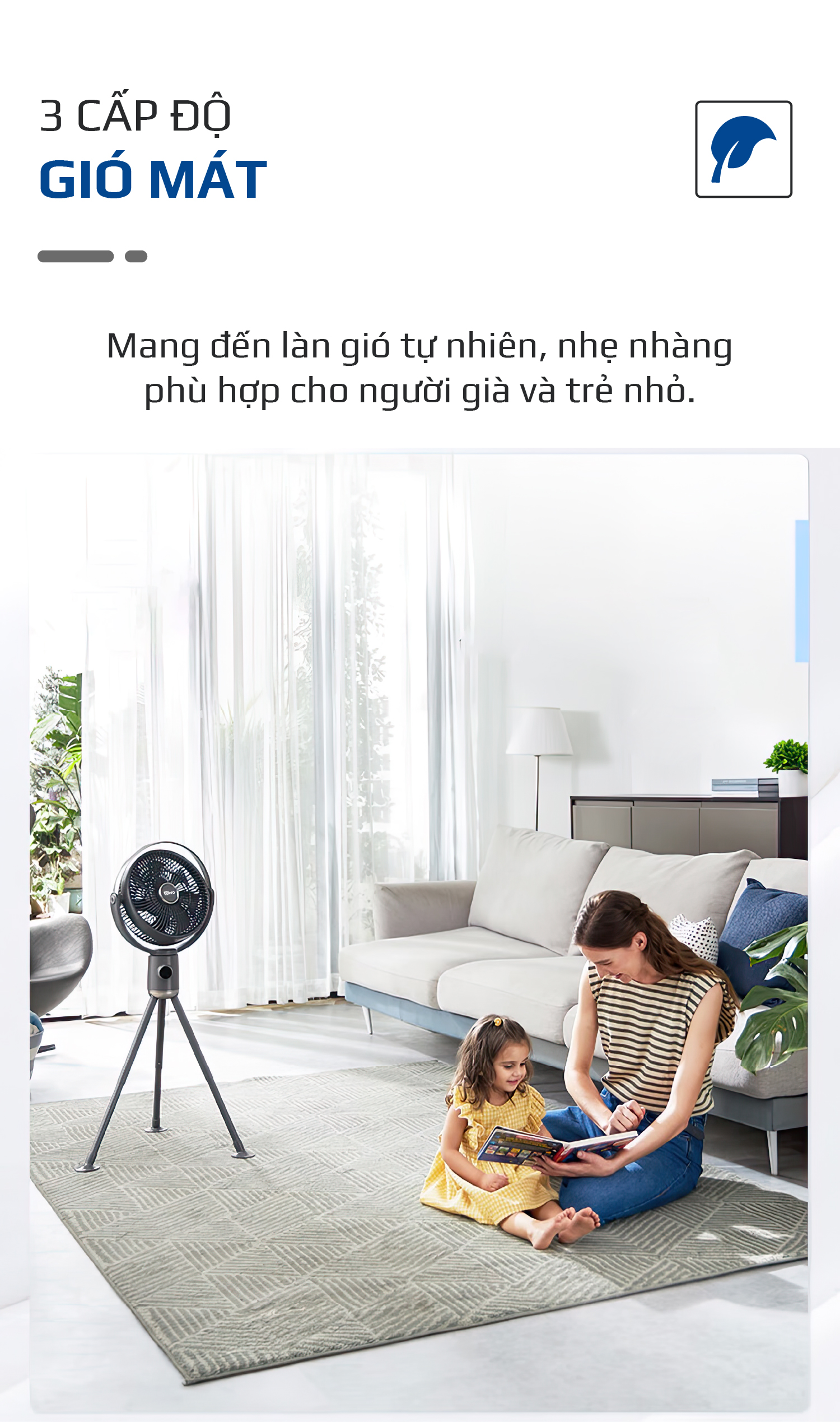 • Làn gió mát sâu nhẹ nhàng, tỏa đều khắp không gian dù có ở gần cũng không bị bạt hơi, khó thở.