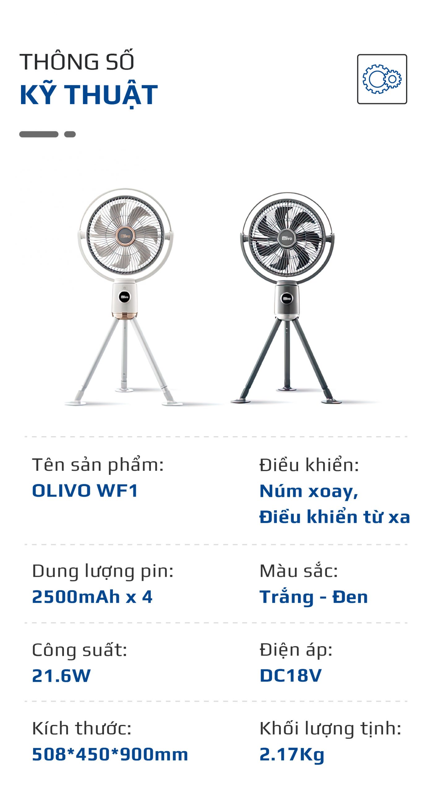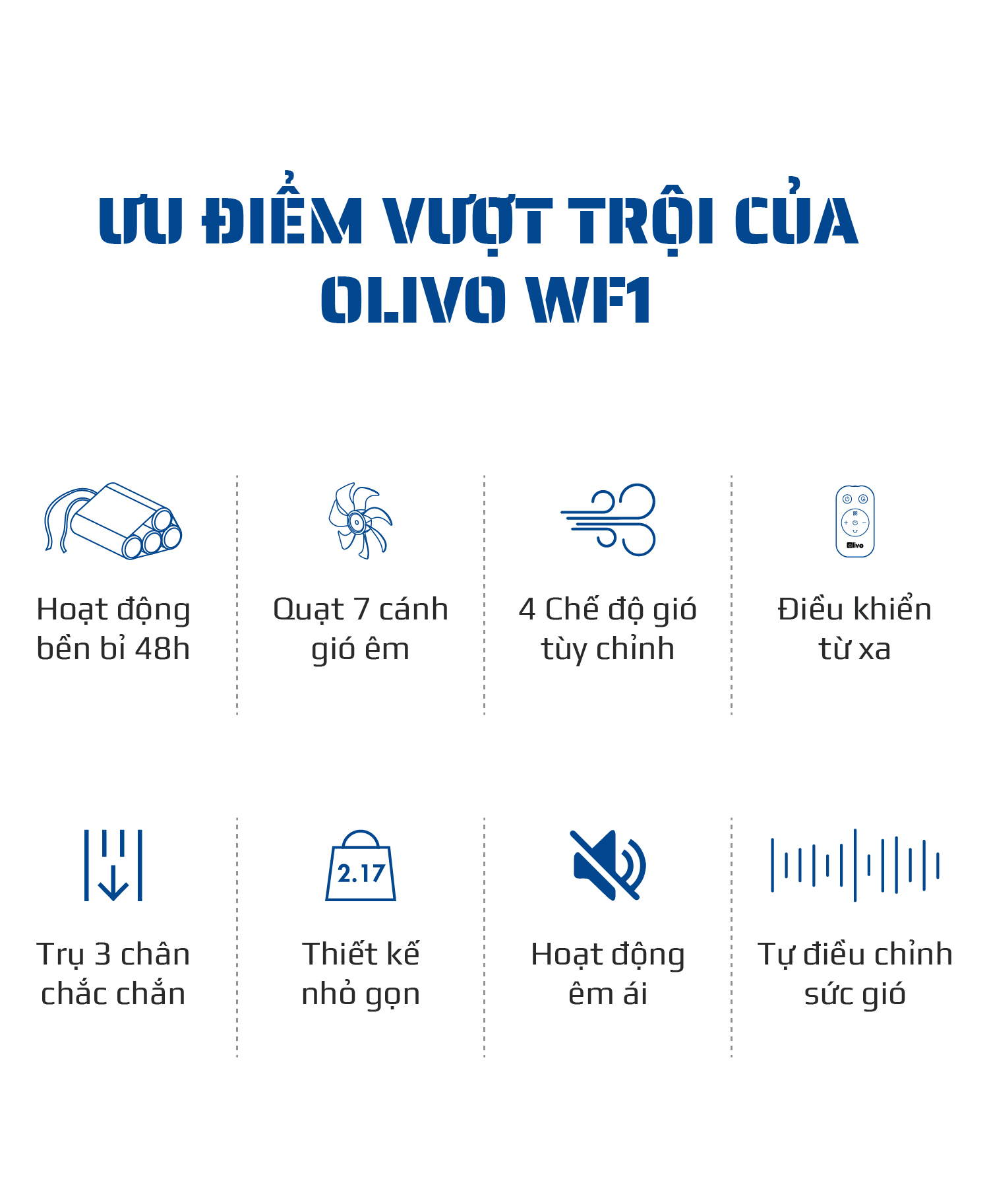 Quạt Tuần Hoàn Không Khí – Quạt Không Dây OLIVO WF1 – Chạy Êm, Sạc Nhanh 2.5h, Hoạt Động Bền Bỉ 48h – Gấp Gọn Dễ Dàng