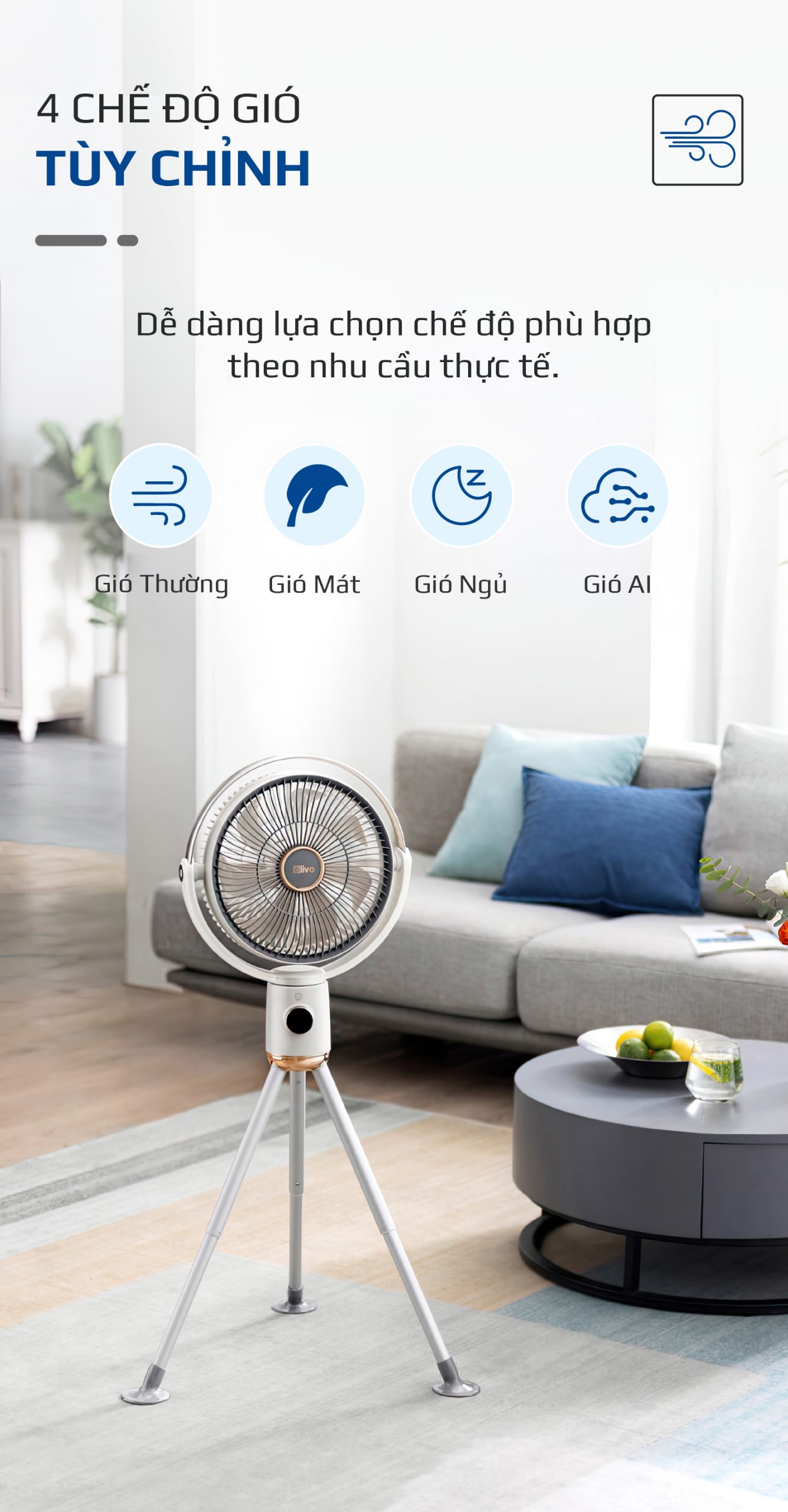 • Mỗi chế độ gió lại có các cấp độ gió nhỏ hơn, tùy thuộc thực tế sử dụng mà người dùng có thể lựa chọn cho phù hợp. Đảm bảo ở tất cả các chế độ quạt đều có khả năng làm mát sâu, nhanh trong không gian rộng và đặc biệt là hoạt động vô cùng êm ái mang lại trải nghiệm dễ chịu cho người dùng.