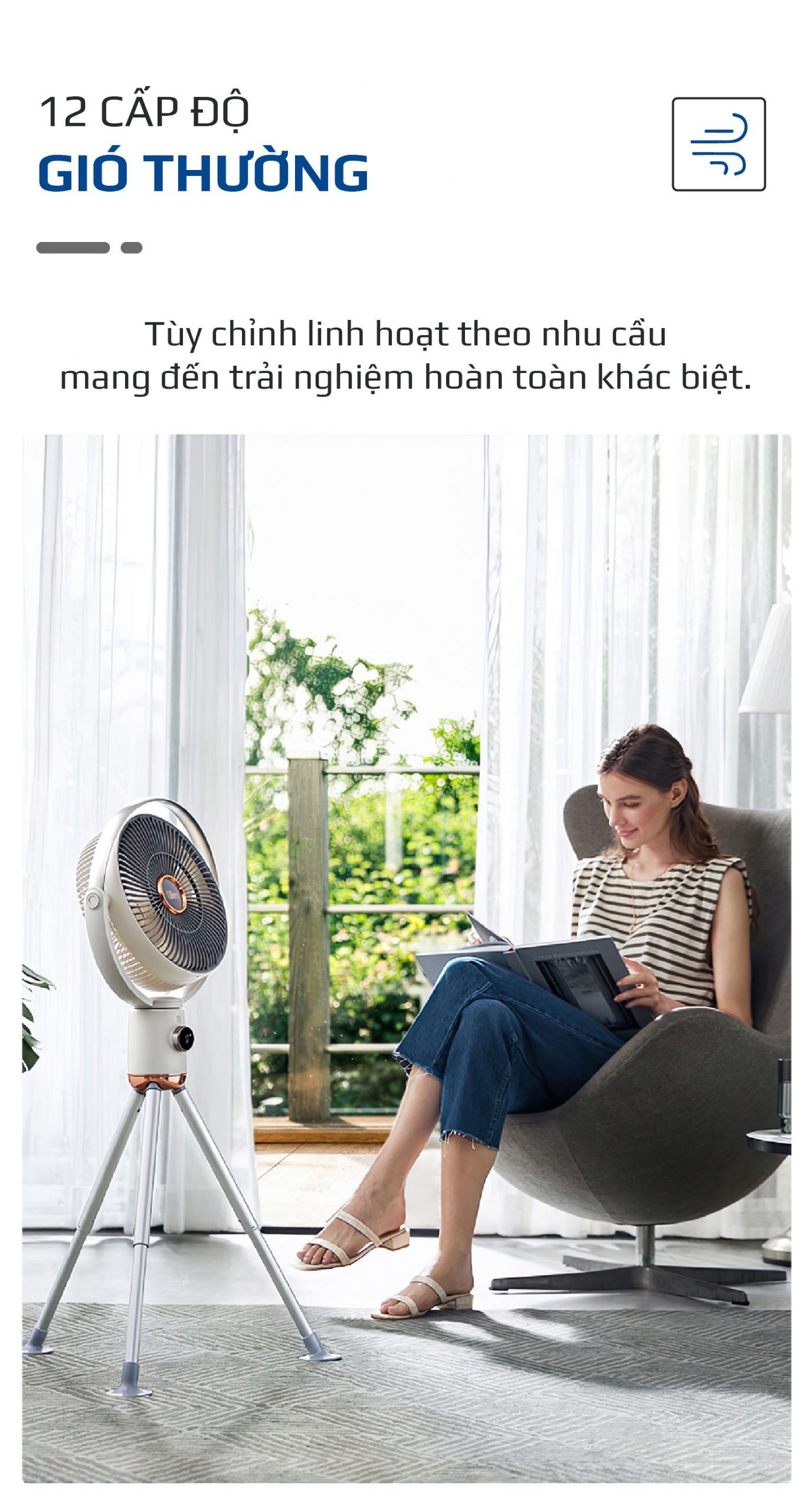 • Tùy chỉnh linh hoạt theo nhu cầu mang đến trải nghiệm hoàn toàn khác biệt. Chế độ gió thường có 12 cấp độ từ 1 đến cấp độ 12 giúp bạn dễ dàng chọn được mức gió mà mình mong muốn.
