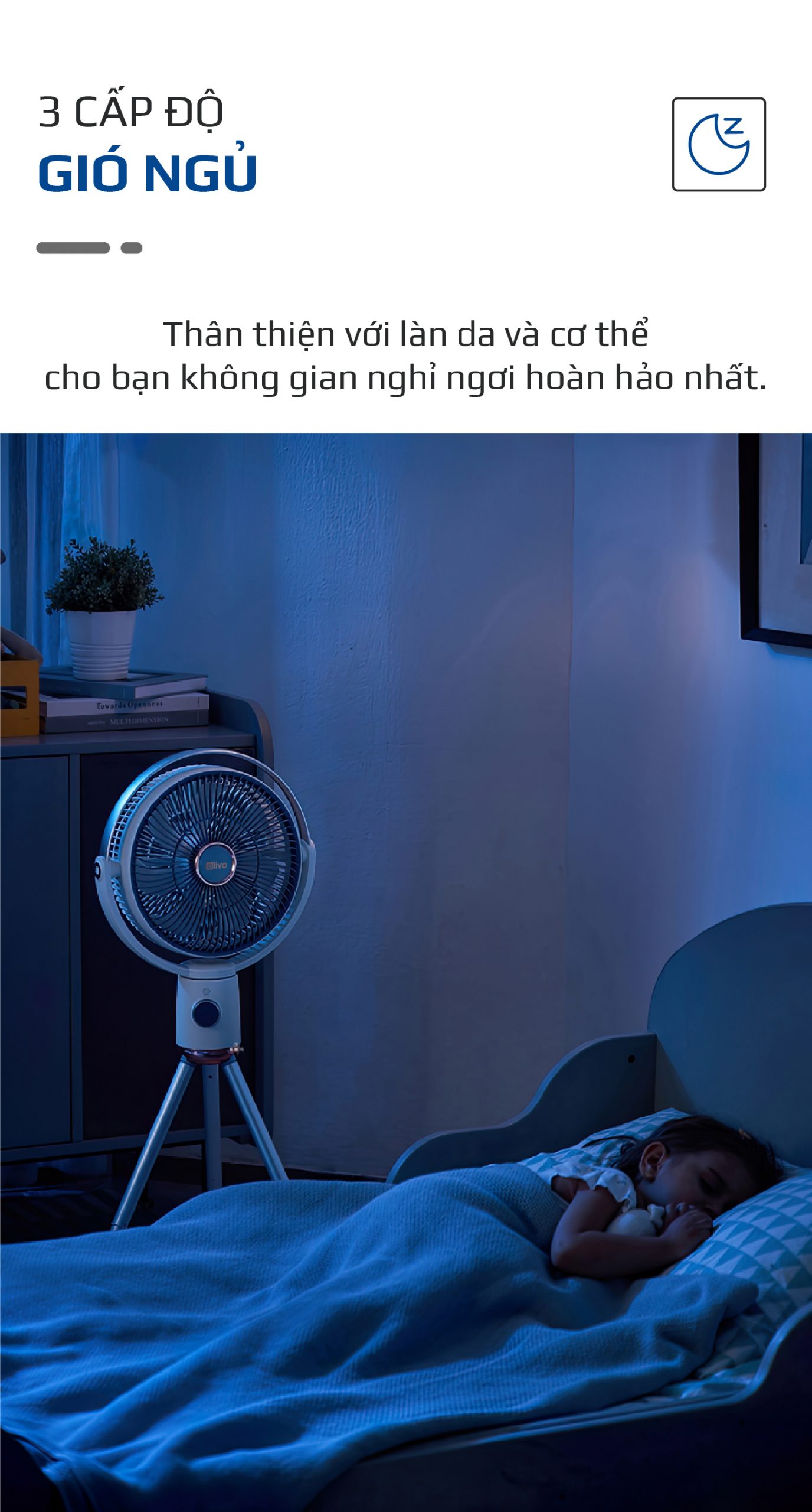 • Với chế độ gió ngủ của OLIVO WF1 bạn hoàn toàn yên tâm vì quạt hoạt động vô cùng êm ái, hoàn toàn không ảnh hưởng đến giấc ngủ của bạn, mức gió dịu nhẹ vừa phải đảm bảo làm mát khắp không gian, thân thiện với làn da và cơ thể cho bạn không gian nghỉ ngơi hoàn hảo nhất.