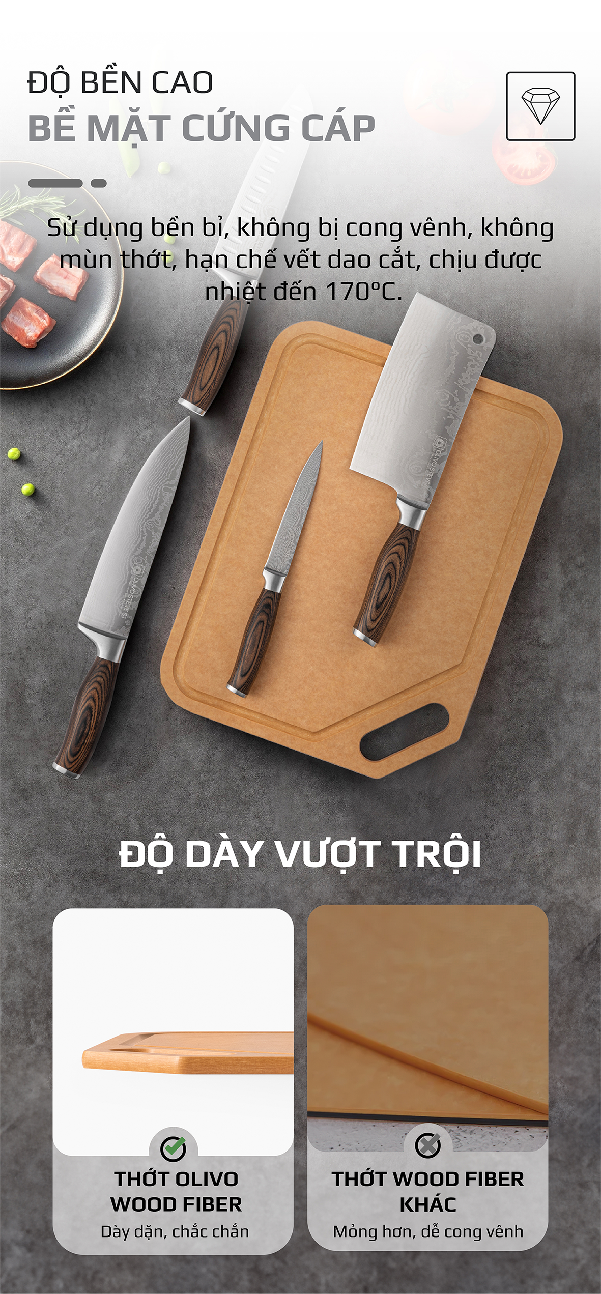 ƯU ĐIỂM VƯỢT TRỘI CỦA SẢN PHẨM THỚT OLIVO WOOD FIBER K30S và K37S