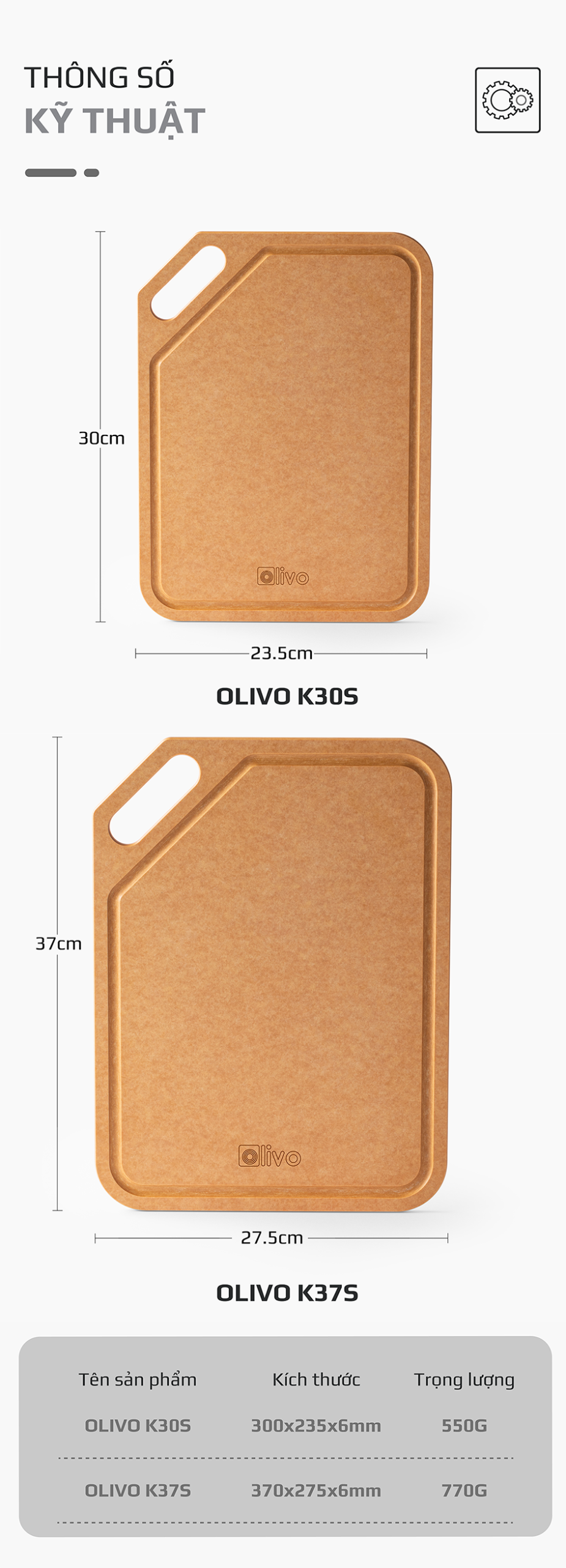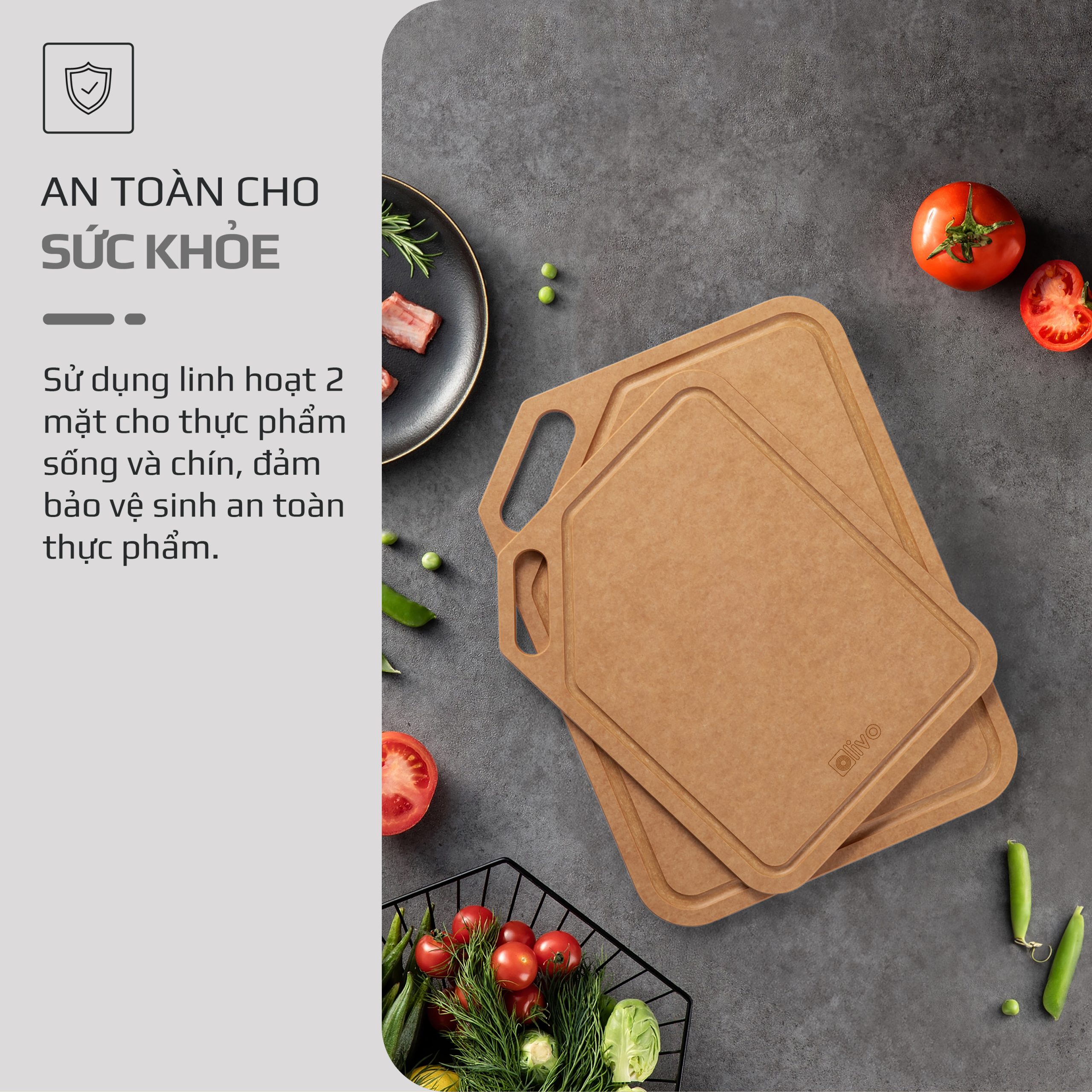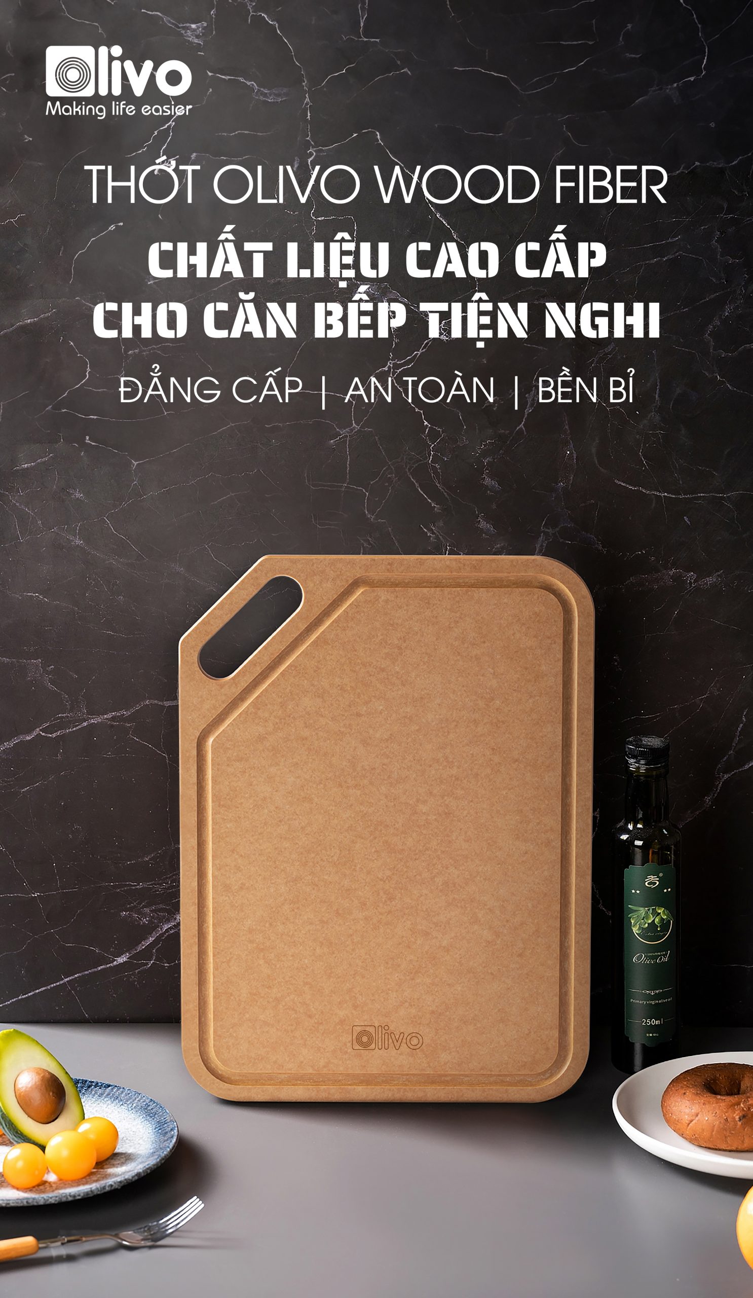 Thớt là vật dụng thiết yếu trong căn bếp. Thớt OLIVO Wood Fiber K30s và K37s là sản phẩm cao cấp thân thiện với môi trường, sức khỏe của người sử dụng. Đặc biệt, chất liệu “wood fiber” – sợi gỗ tự nhiên đáp ứng mọi tiêu chuẩn an toàn có thể kể đến như: thớt không bị mùi hôi, ẩm mốc, cong vênh, mùn thớt, có độ bền cao, hạn chế vết dao cắt… Vì vậy, thớt OLIVO Wood Fiber K30s và K37s xứng đáng góp mặt trong căn bếp nhà bạn để trở thành trợ thủ đắc lực cho người nội trợ khi sơ chế thực phẩm.