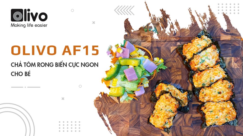 Chả tôm rong biển, một món ăn vô cùng hấp dẫn đối với các bé lại có cách làm cực đơn giản. Hãy cùng tham khảo cách làm món ăn này bằng nồi chiên không dầu OLIVO AF15 vô cùng đơn giản và dễ thực hiện để thay đổi khẩu vị cho bé nhé. 1.